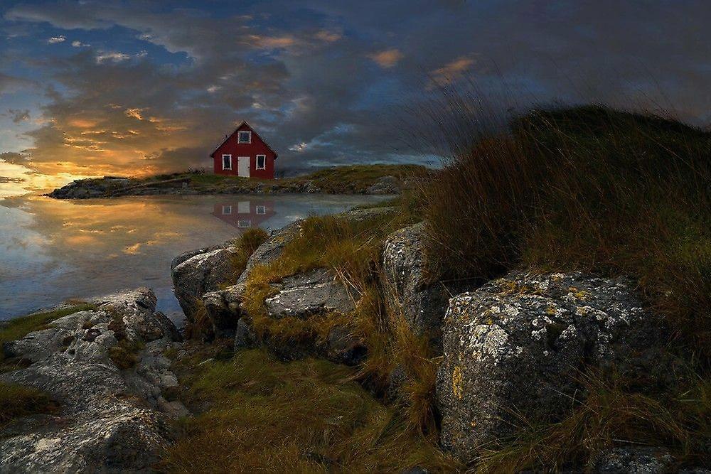 Red Cabin on Sommaroy Island Norway Stress Reliever Jigsaw Puzzle H0879
