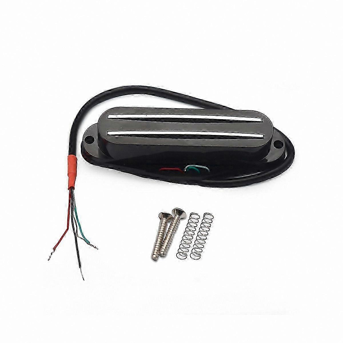 Dual hot rail style twin coil humbucker pickup designed for Strat and Tele electric guitars Magnets: Alnico 5, wax potted to eliminate unwanted feedback and noise Wiring: 4conductor cables; black and bare are ground, green is hot, red and white are for coil splitting Specs: total resistance 910 k ohms; single coil resistance 45 k ohms; mounting hole spacing 77 mm Key benefits Hum cancelling twincoil design provides quieter operation and a fuller, more balanced tone compared to a standard single coil Wax potting reduces feedback and microphonic noise for clearer signal across a range of amps and gain levels Flexible wiring enables coil splitting for versatile tones, including traditional singlecoil sounds Alnico 5 magnets contribute bright dynamics and responsive note attack for Strat/Tele style pickups Specifications and compatibility Fits Strat and Tele guitars with a mounting hole spacing of 77 mm 4conductor wiring supports coil splitting and flexible wiring options Total resistance 910 k ohms; single coil 45 k ohms Use scenarios Replacing stock pickups on a Strat or Tele to achieve a humcanceling, fullbodied twocoil tone with reduced hum and noise Engaging coil split (red/white) to dial in classic singlecoil tones for vintage Stratlike or Telelike quack Employing the waxpotted design in live or gain settings to minimize feedback and maintain clear, articulate signal without excessive noise