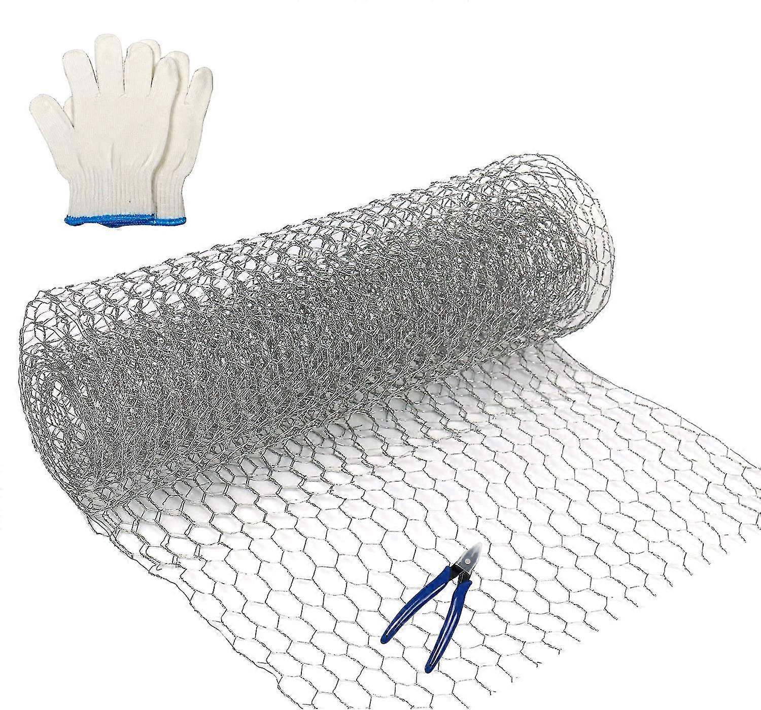 ①. Package & Size - You will receive a roll of chicken wire mesh + FREE GIFTS: A Cutting Pliers for easy cutting + a pair of Gloves for hand protection. Chicken wire measures 35cm x 1m (13.7" W x 39.3"L); The chicken wire hexagon hole size is 16 x 25 mm (0.62 x 0.98 inch). ②. Sturdy yet Pliable - The floristry chicken wire is constructed of durable hot-dipped galvanized iron wire with a diameter of 0.6mm, NO lead, NOT easy to rust; Pliable and lightweight chicken wire net makes your crafts more easier; Chicken wire mesh to make your crafts more reliable and long-lasting. ③. Chicken Wire for Crafts - This small size chicken wire netting is sturdy yet pliable, allowing you to DIY your home projects, like cabinet door replacement, jewelry holder, photo wall, DIY floral decor, Christmas wreath frame, lamp shades, jar covers etc. ④. Chicken Wire Fencing - Galvanized hexagonal chicken wire fence is also ideal for chicken and rabbit containment, lawn and garden fence, plant protection to keep curious critters at bay.