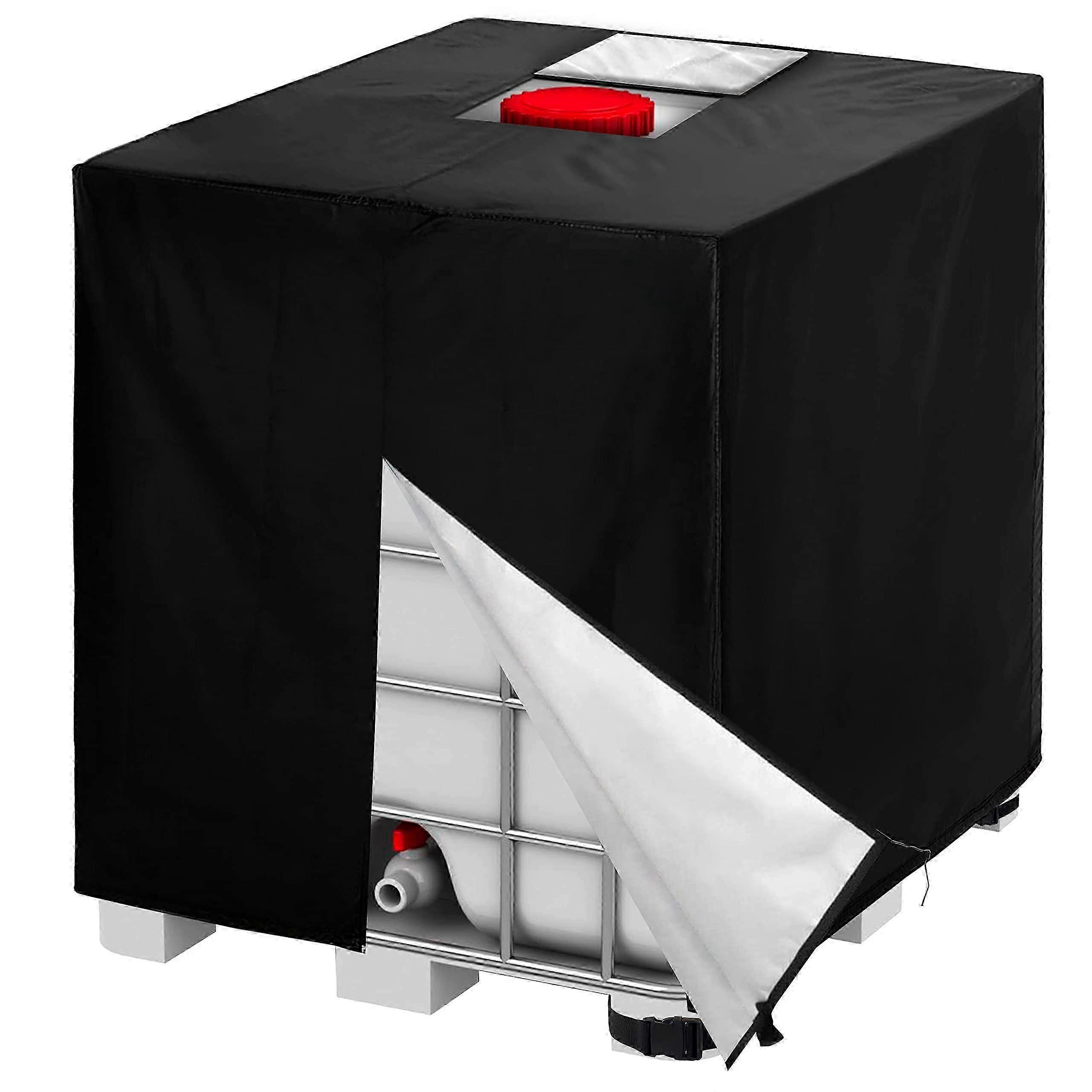①. Universal Fit for 1000L IBC Tanks. Designed to fit most standard Intermediate Bulk Containers (IBC) with a capacity of 1000 liters, this cover measures 47.2 x 39.4 x 45.7 inches (120 x 100 x 116 cm). Ideal for protecting 275-gallon IBC totes used in various storage and transport applications. ②. Durable, Weather-Resistant Construction. Crafted from 420D Oxford fabric for long-lasting strength and protection. The material is rainproof to shield your tank from moisture, dust, and outdoor elements. Features a sturdy zipper on one side for easy access and a durable nylon cover to protect the tank opening. ③. Quick and Secure Installation. Equipped with a strong elastic rope for a snug, reliable fit over your container. Compatible with a variety of storage tanks and barrels, including rainwater tanks, IBC barrels, and other container types within the specified size. ④. Space-Saving, Practical Design. The cover folds compactly when not in use, making storage simple and efficient. An integrated flap over the screw cap allows you to access and operate the cap without removing the cover, saving time and effort during use. ⑤. Versatile Applications. 1. Outdoor water storage protection – Safeguards your IBC tank from rain, dirt, and UV exposure when stored outside. 2. Agricultural use – Keeps rainwater collection containers clean and secure for farm or garden irrigation. 3. Industrial or construction site – Protects bulk liquid storage from weather and contamination in demanding environments. This protective cover combines durability, ease of use, and thoughtful design to keep your IBC tote clean and functional in any setting, while ensuring quick access when you need it.
