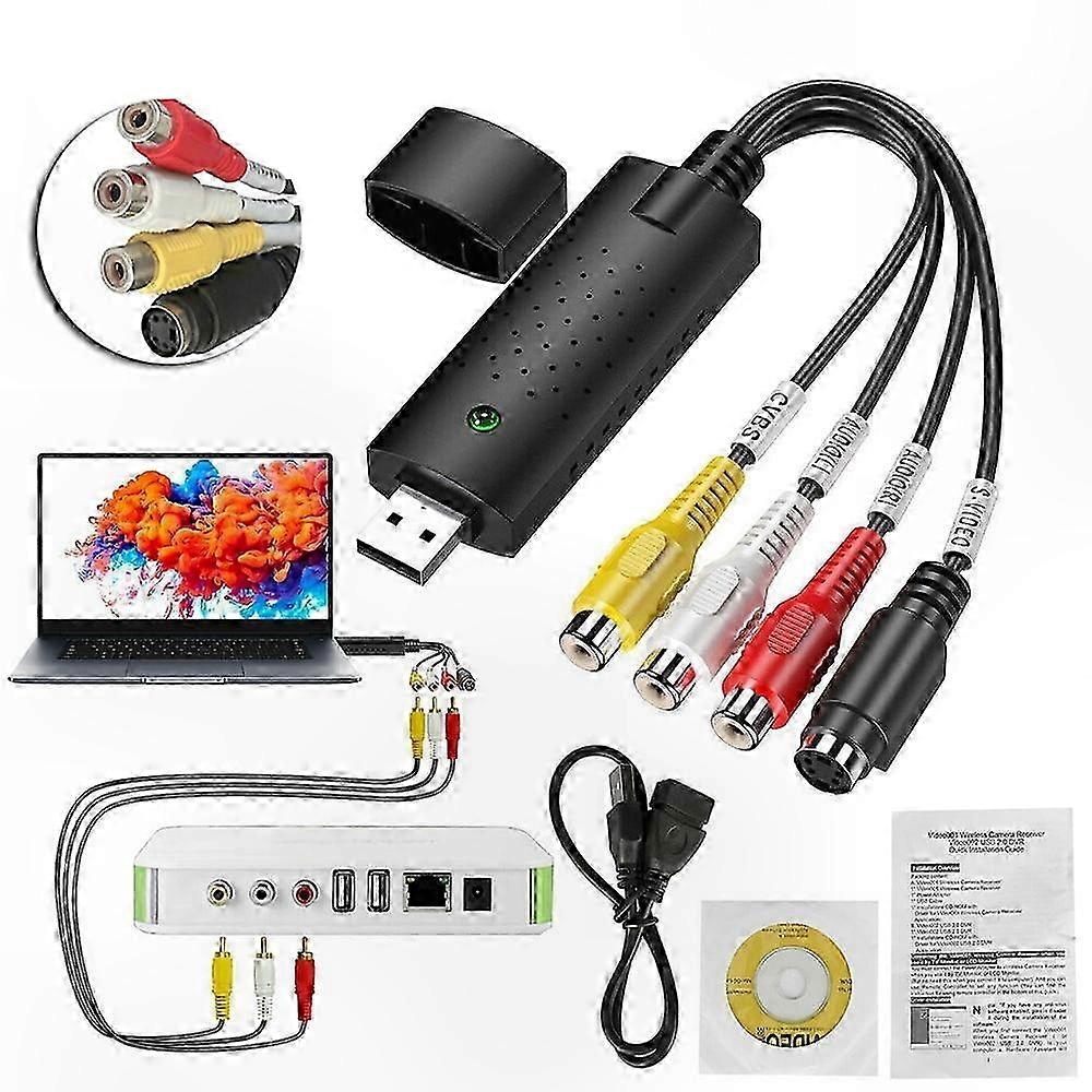 USB 2.0 Audio Video Capture Adapter, VHS to Digital Transfer Tool, 2Pcs Converter for PC TV VCR DVD Recording Setup