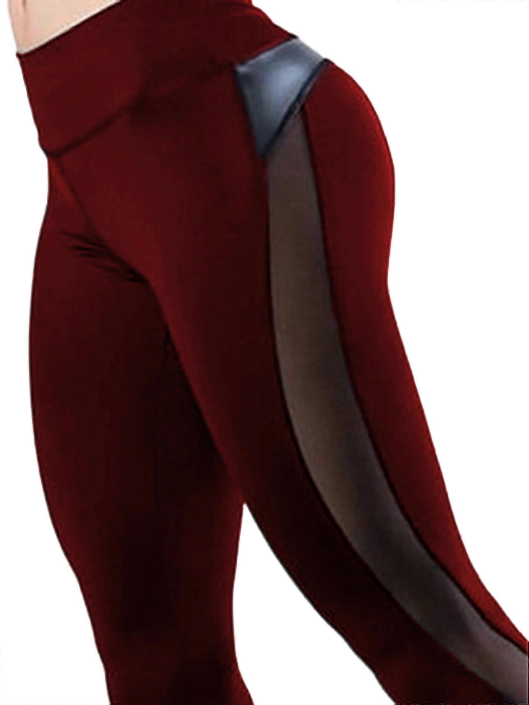 Women'S Mesh High Waist Yoga Leggings with Pockets, Tummy Control, 4-Way Stretch Wine Red L