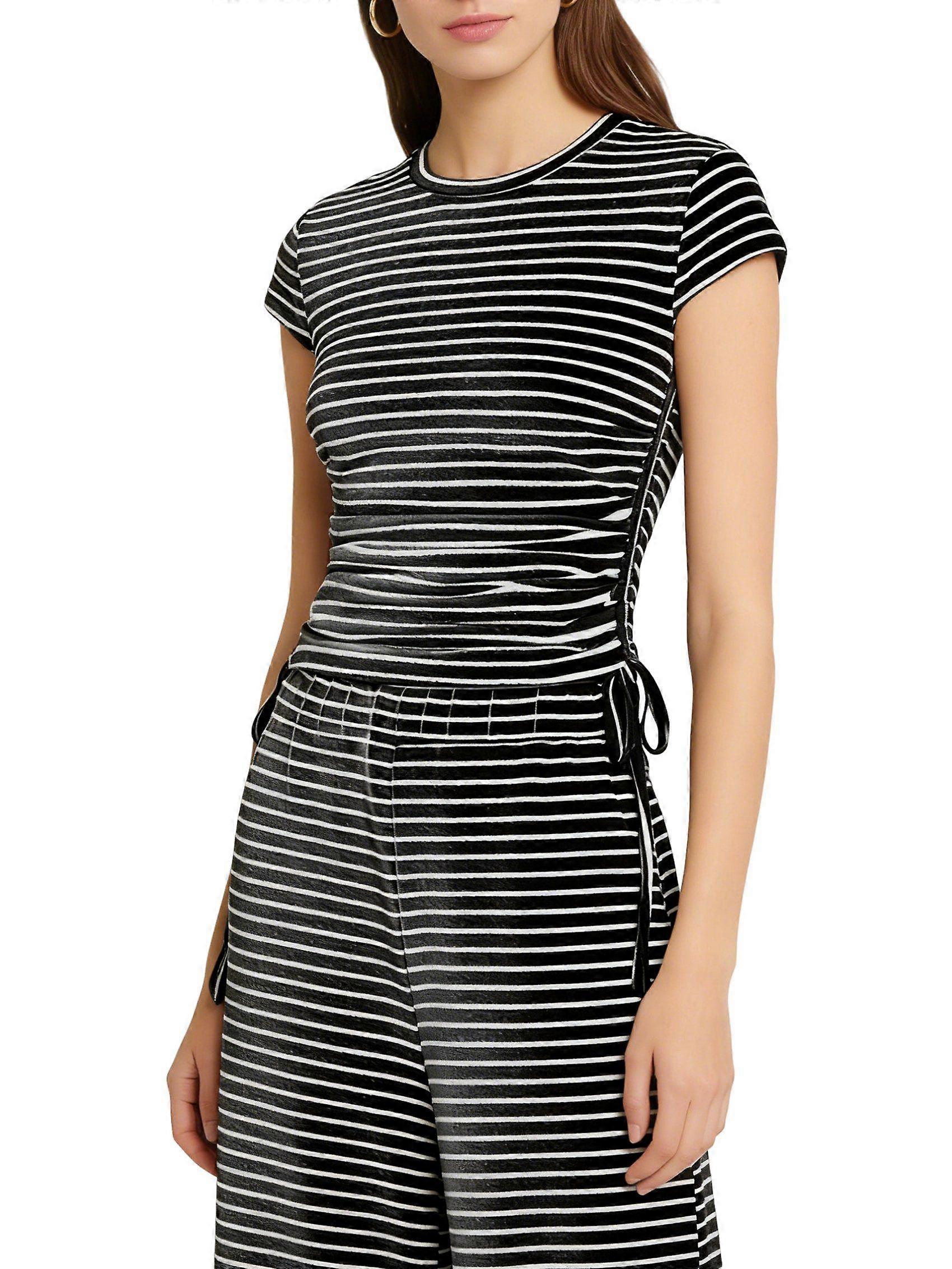 Women 2 Piece Sets Summer Striped Outfits Matching Short Sleeves Top Wide Leg Lounge Pants Travel Black XXL