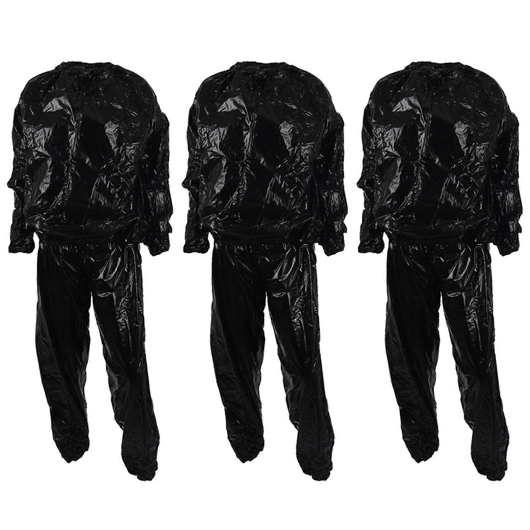 Sauna suit, material made from PVC, with good quality. Durable and high quality sweat suit; Waterproof and windproof, protective. Accelerate the fat burning and make you slim. Excellent for your gym training and lose weight as it works so quick to get the result you want. Suitable for helping loss weight, outdoor sports, such as running, jumping, cycling and playing balls etc. Great value for money. Color: Black Size(cm) 4XL: Weight: over 100KG; Clothes length: 82; Pant length: 119; Chest circumference: 146; Hip circumference: 164 Gender: Unisex Material: 100% PVC Package Includes: 3 x Sauna Suit Only the above package content, other products are not included. Note: Light reflection and different displays may cause the color of the item in the picture a little different from the real thing. The measurement allowed error is +/- 1-3cm.