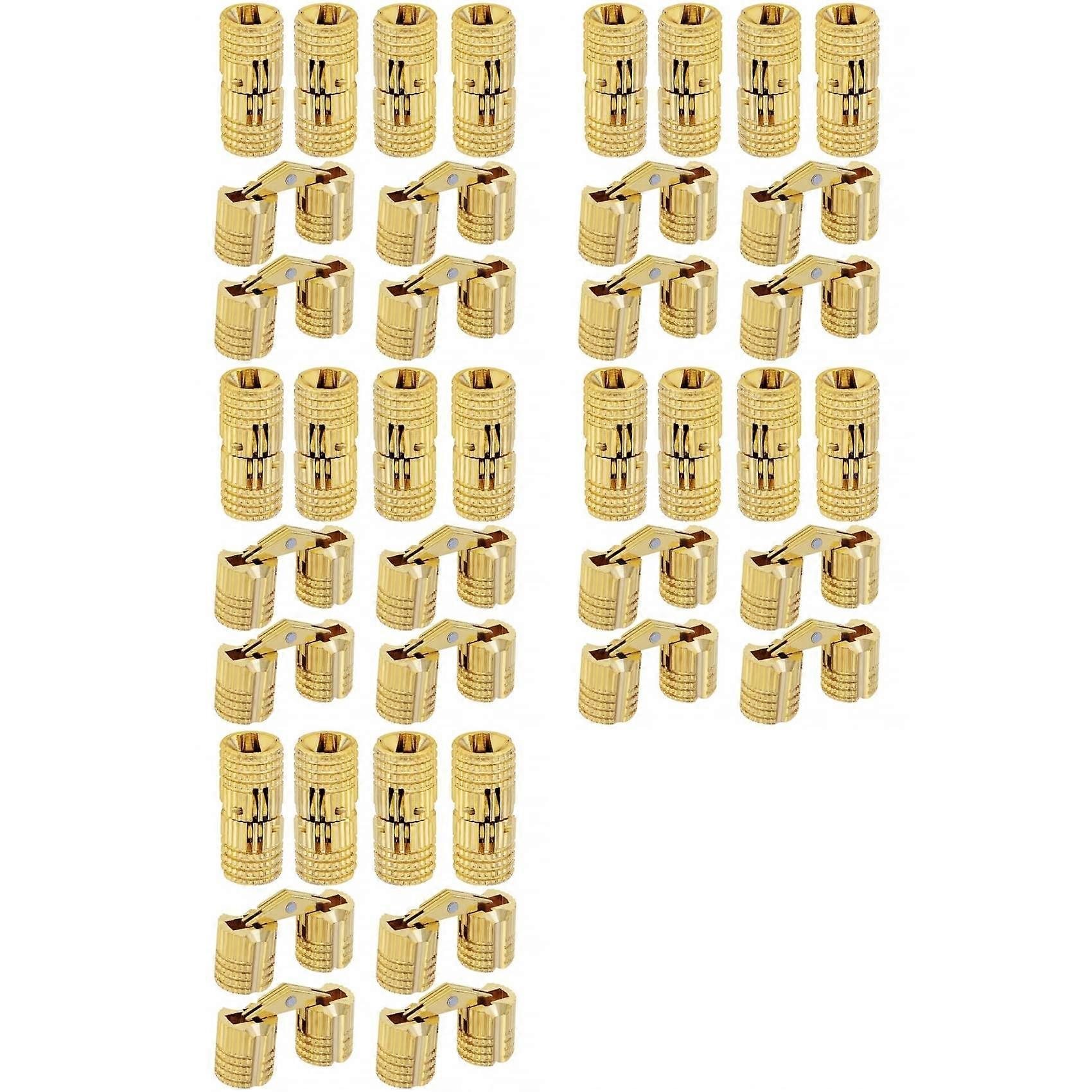 40Pcs 10 mm Hidden Brass Barrel Hinges,180 Degree Opening Angle Concealed Furniture Hinges