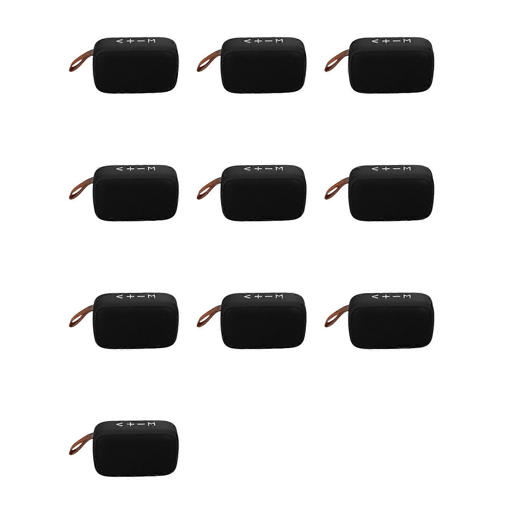 Bluetooth Wireless Connection: Experience seamless audio transmission with the Speaker's Bluetooth wireless connection. Ideal for outdoor sports and parties. Portable Design: This compact and lightweight speaker is designed for portability, making it perfect for on-the-go use. Supports TF Card and Mobile Phone: The speaker supports TF cards and mobile phones, offering multiple ways to play your favorite tunes. Universal Stereo Sound: Enjoy high-quality stereo sound from this universal speaker, enhancing your music experience with rich, clear sound. Full-Range Audio Crossover: With its full-range audio crossover, this speaker delivers a balanced sound that's suitable for various genres. Battery capacity: 300mAh Charging time: about 1-2 hours Playing time: 1-2 hours How to use:Bluetooth USB TFcard FM radio Colour:Black Material:ABS Package Contents: 10 x Sound Box 10 x cable Only the above package content, other products are not included. Note: Light reflection and different displays may cause the color of the item in the picture a little different from the real thing. The measurement allowed error is +/- 1-3cm.