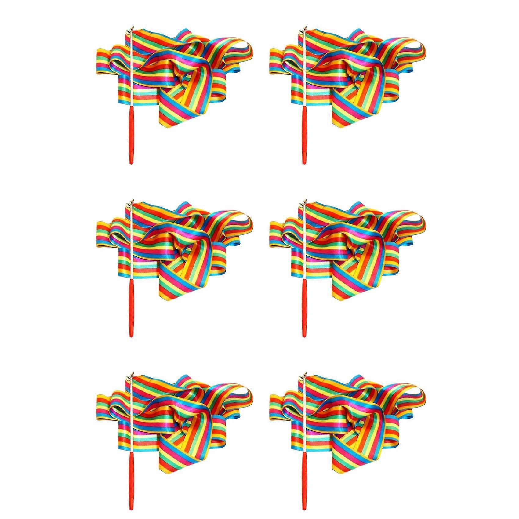 6X Ribbon Dance Rainbow Ribbon Children'S Dance Gymnastics Rhythm Stick Colorful Gymnastics Ribbon Sporting Goods (2M)