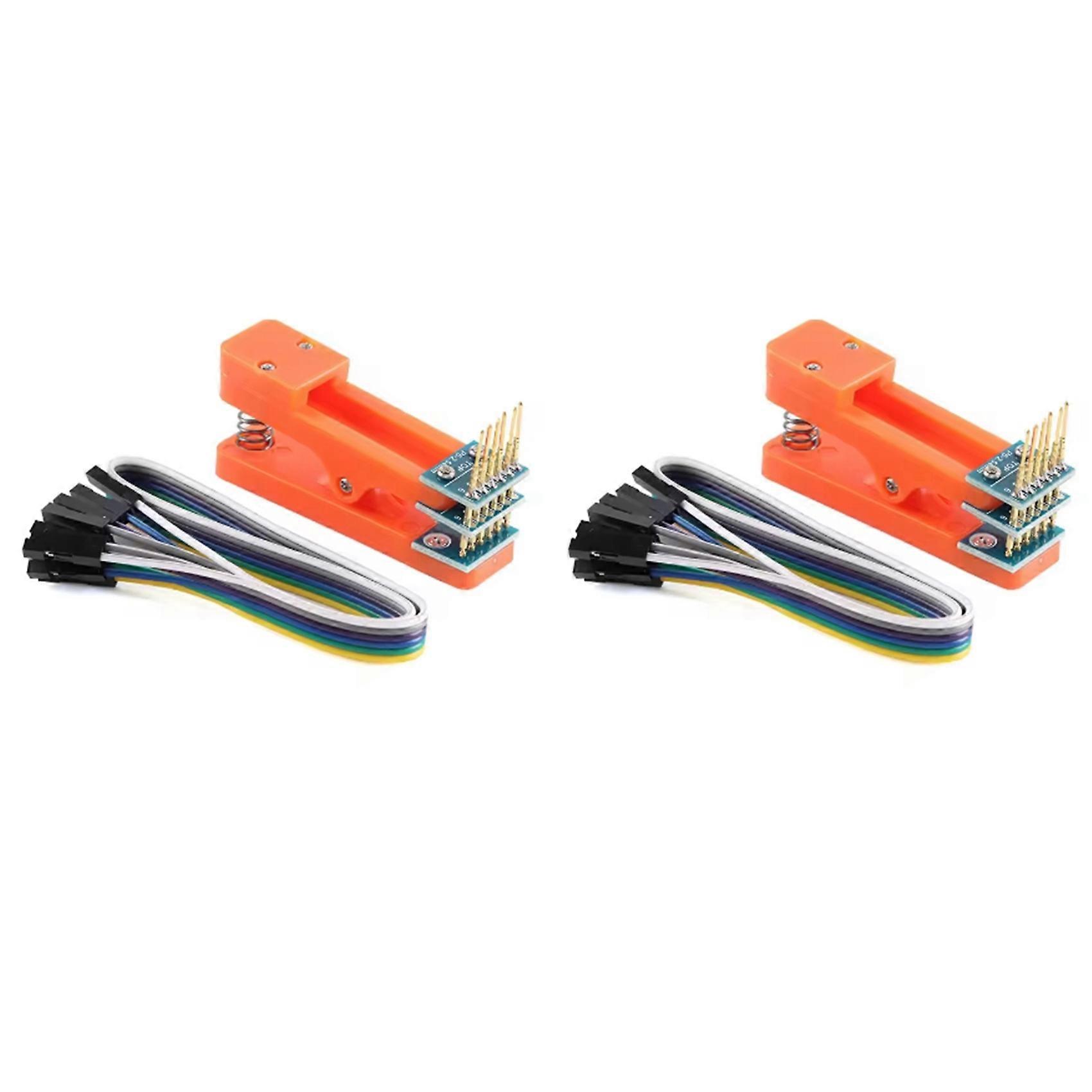 2X Test Stand PCB Clip 2.54mm Spacing Clamp Burning Fixture Probe Pogo Pin Download Program Burn 6P Cable