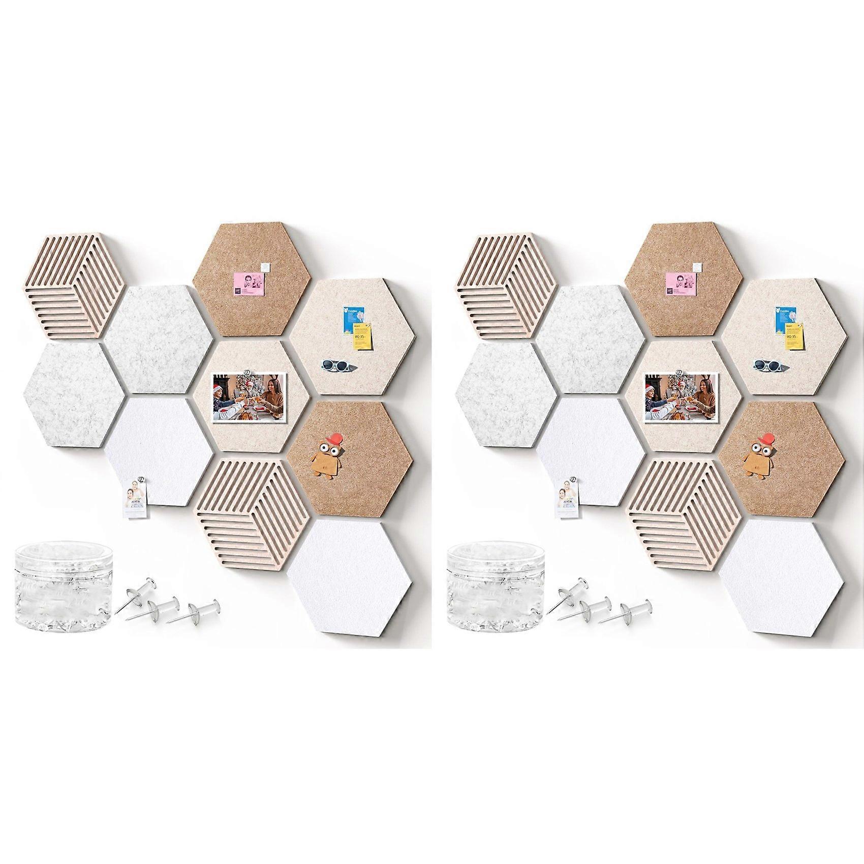 Stylish & Functional Cork Board for Any Space: Transform your walls with this set of modern hexagon tiles. Perfect as a versatile bulletin board for the office or a creative pin board for the classroom, it enhances any office decor or classroom decor with its unique geometric design Premium Quality & Durable Material: Crafted from 100% natural, sustainable cork, this cork board is built to last. The high-density material resists warping and ensures pins stay firmly in place, making it a reliable pin board for daily use Effortless Installation & Customizable Layout: Create your own pattern! Includes 20 hexagon cork board tiles and 100 transparent pins. Arrange them in a honeycomb, zigzag, or your own unique shape using the included adhesive strips or pushpins. No tools needed for this cork board for office or home walls Ideal for Organization & Creativity: Go beyond a simple bulletin board. Use it for vision boards, important memos, family photos, or DIY art projects. It's the perfect cork board for office organization or as a collaborative pin board in a creative studio Complete Kit with Superior Hold: Get everything you need to start decorating. The natural cork surface securely holds notes and photos without falling, and pins leave minimal holes, allowing for endless rearrangements on your cork boards for walls Color: As Shown Material: Felt Package Contents: 20 Pack Cork Bulletin Board Tiles with 100 Pins Only the above package content, other products are not included. Note: Light reflection and different displays may cause the color of the item in the picture a little different from the real thing. The measurement allowed error is +/- 1-3cm.