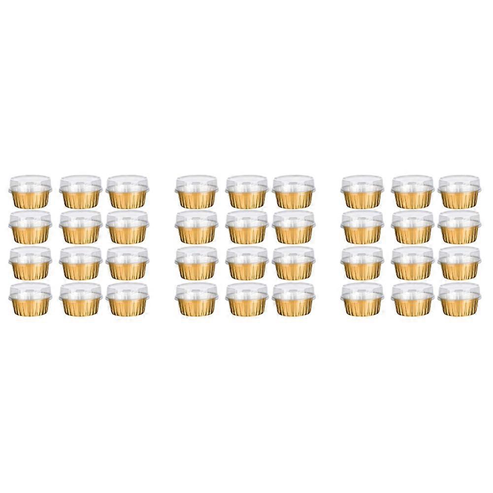Dessert Cups with Lids, 75 Pack Gold Aluminum Foil Baking Cups Holders, Cupcake Bake Utility Ramekin Clear Pudding Cups