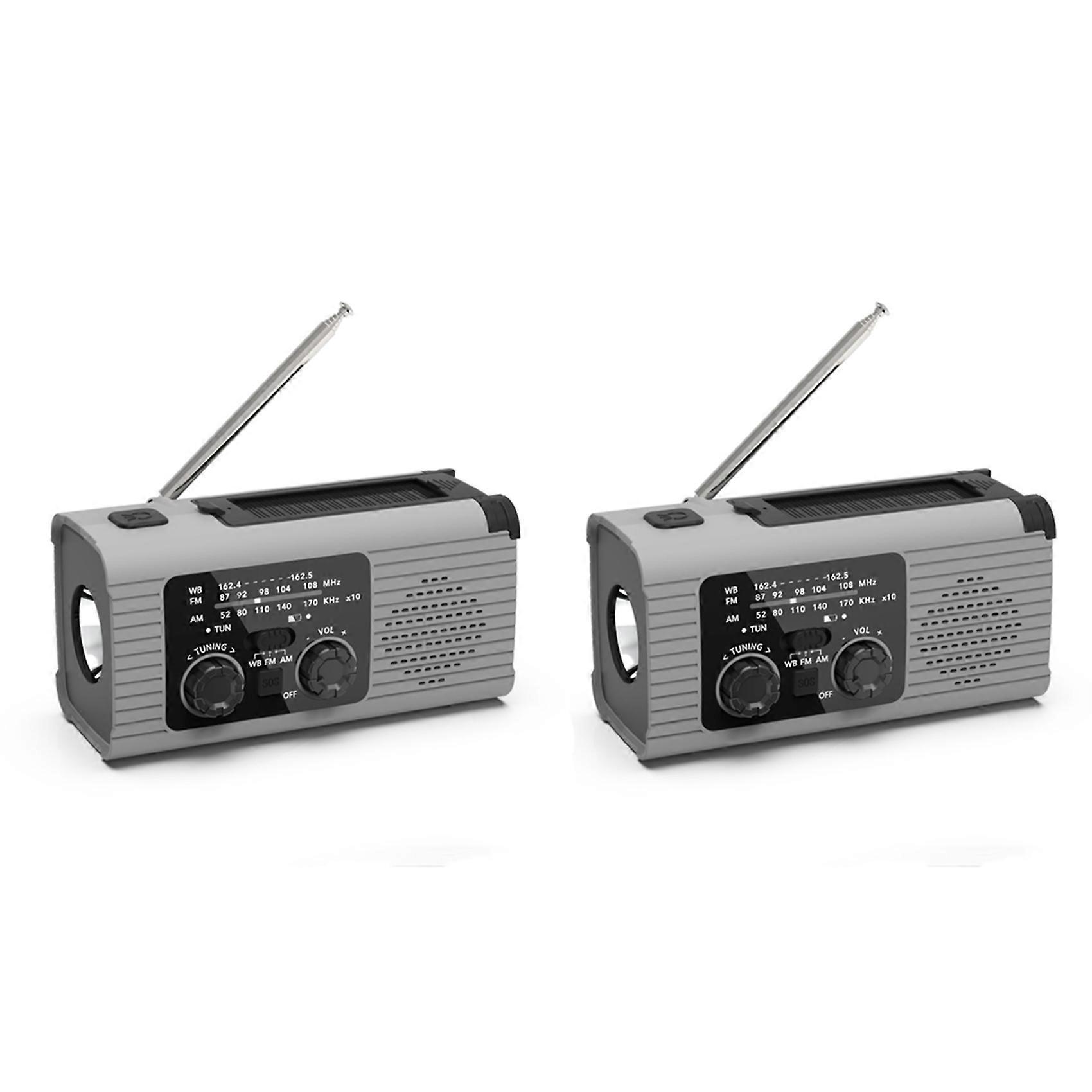 2X Emergency Weather Radio, 4000MAh Weather Alert Radio Solar Charging, Hand Crank & USB Charged, AM/FM Radio - Gray