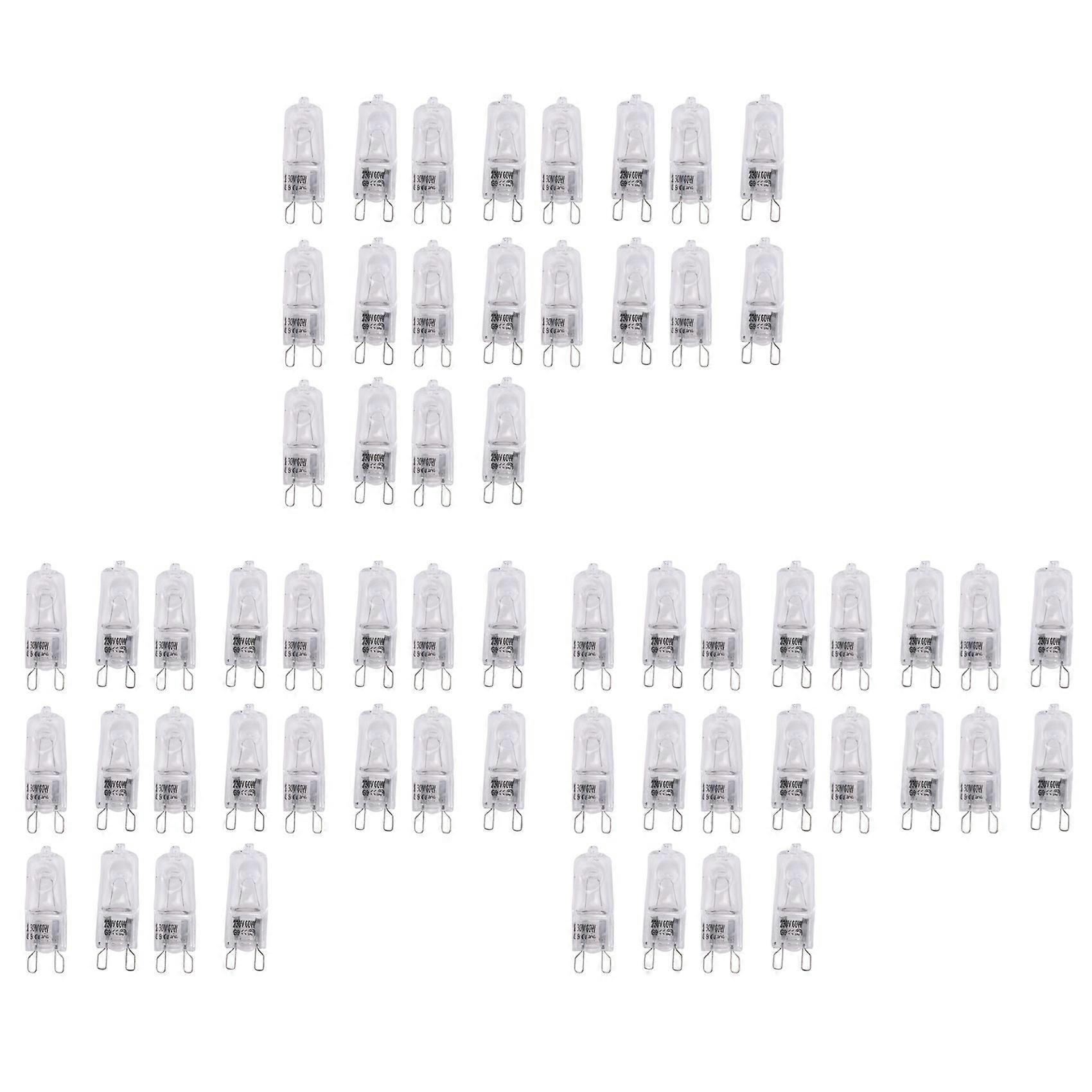 60Pcs G9 Halogen Light Bulbs,60W Clear Halogen Lamps Dimmable,Warm White 2800K for Chandeliers,Pendants,Landscape Lights