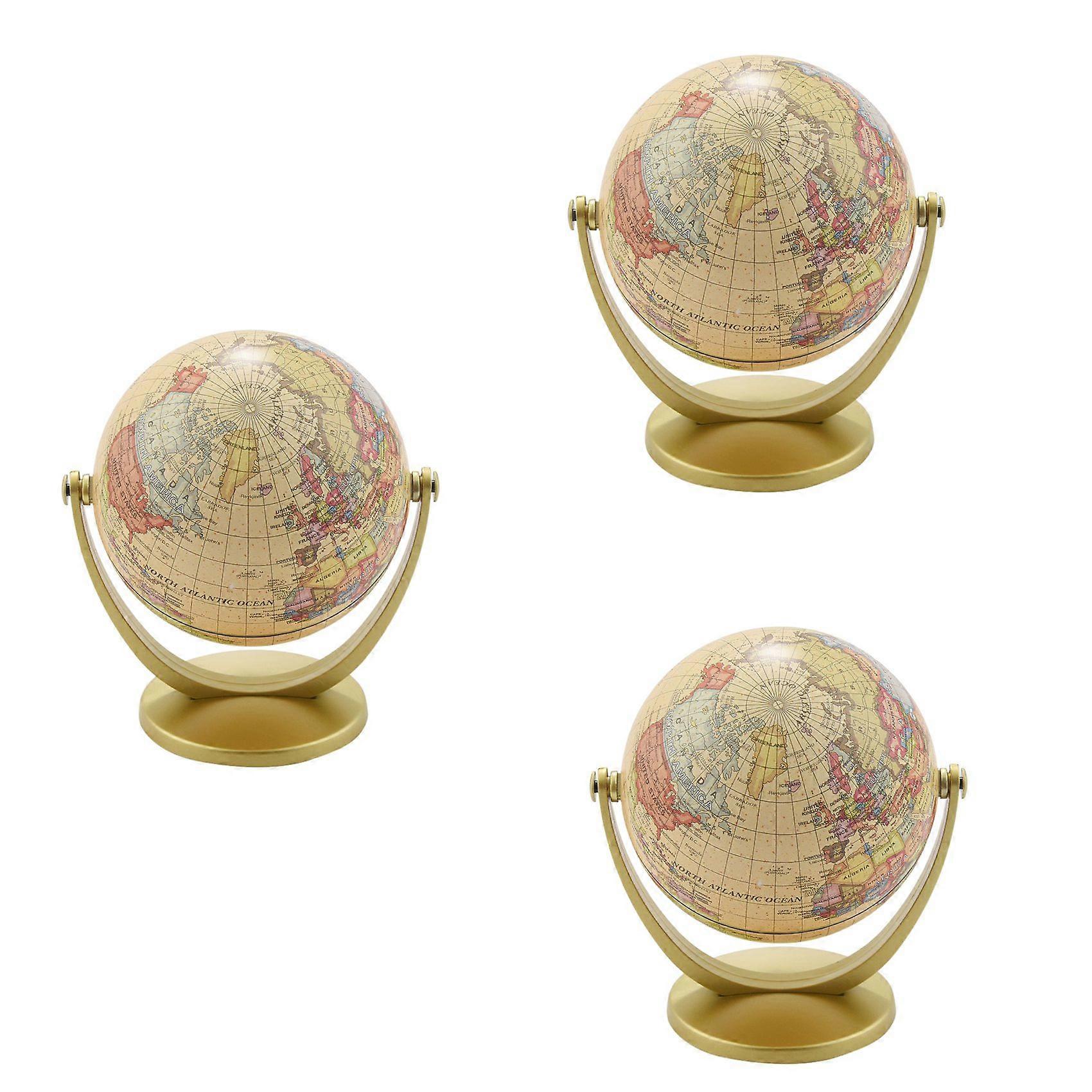 3X Retro Rotating World Globe Earth Antique Home Office Desktop Decor Geography Educational Learning Map School Supplies