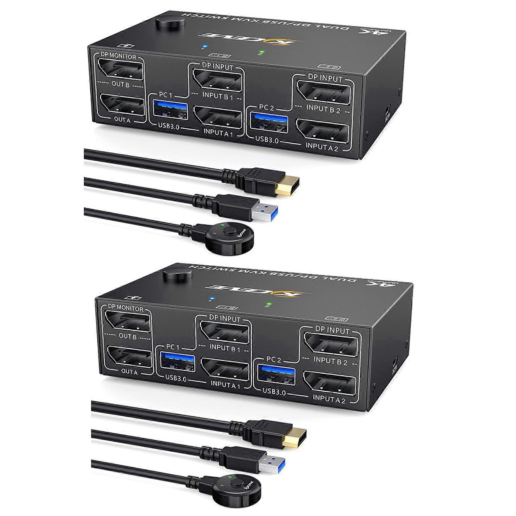 4x KCEVE KVM Switch Dual Monitor DisplayPort, 4 USB3.0 for 2 Computers, 2 in 2 Out DP 1.4 KVM Switch