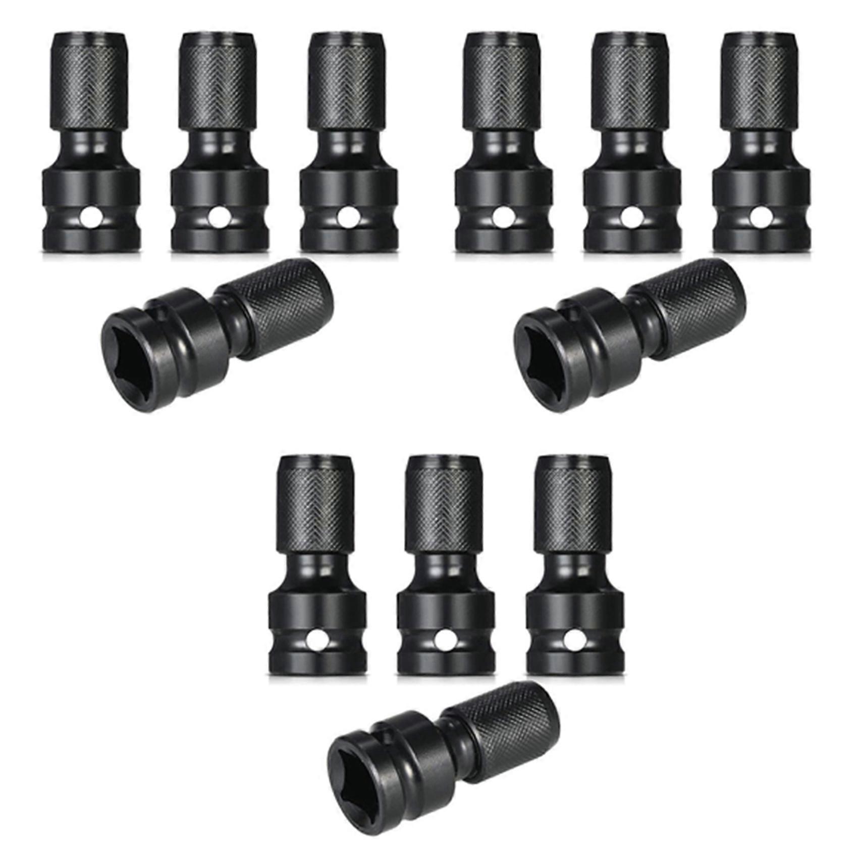 12 Pcs Impact Adaptor 1/2 Square Drive to 1/4 Hex Shank Socket Adapter Quick Release Chuck Converter for Ratchet Wrench