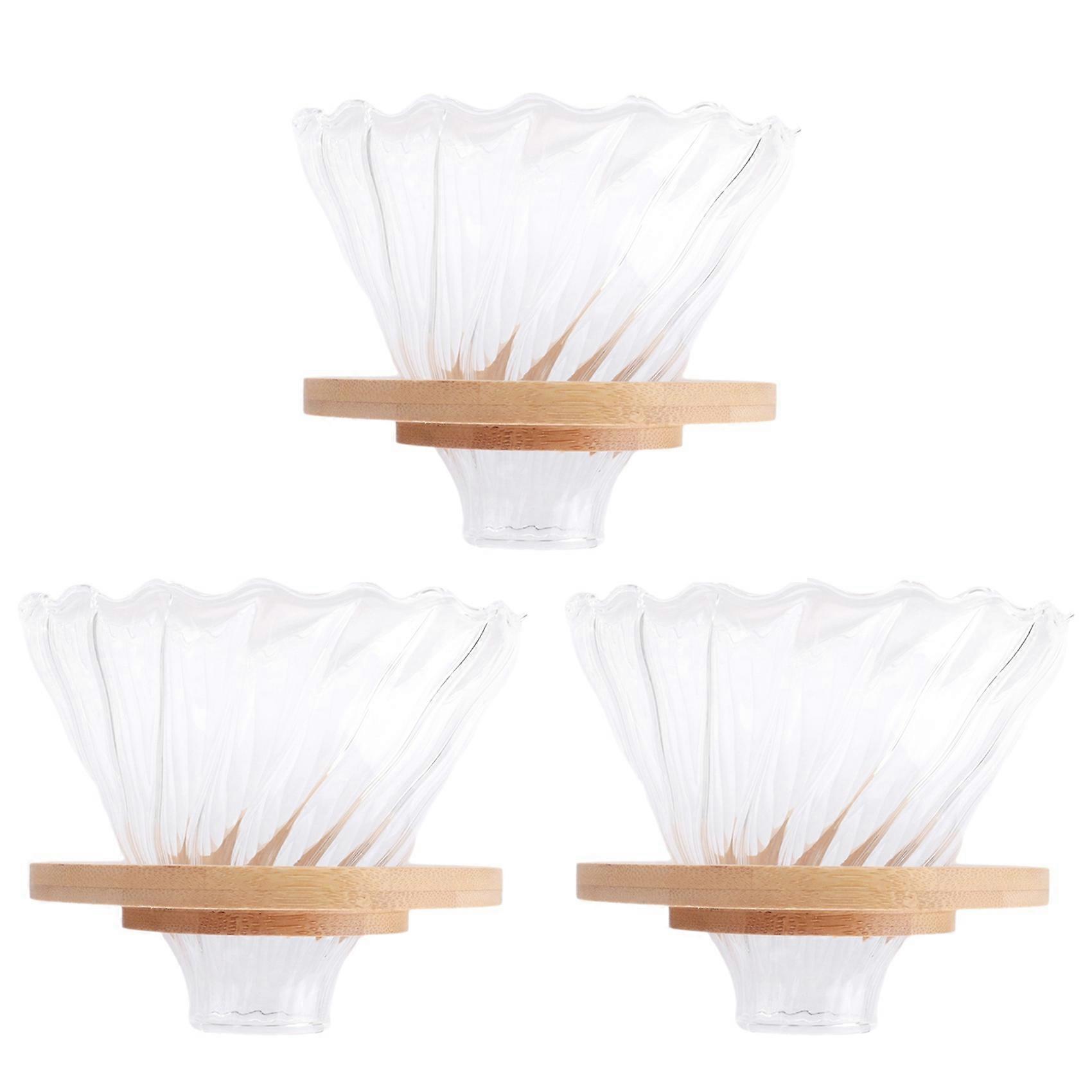 3X Wooden Coffee Dripper Reusable Filters V60 Glass Style Glass Coffee Filter Reusable Coffee Funnel