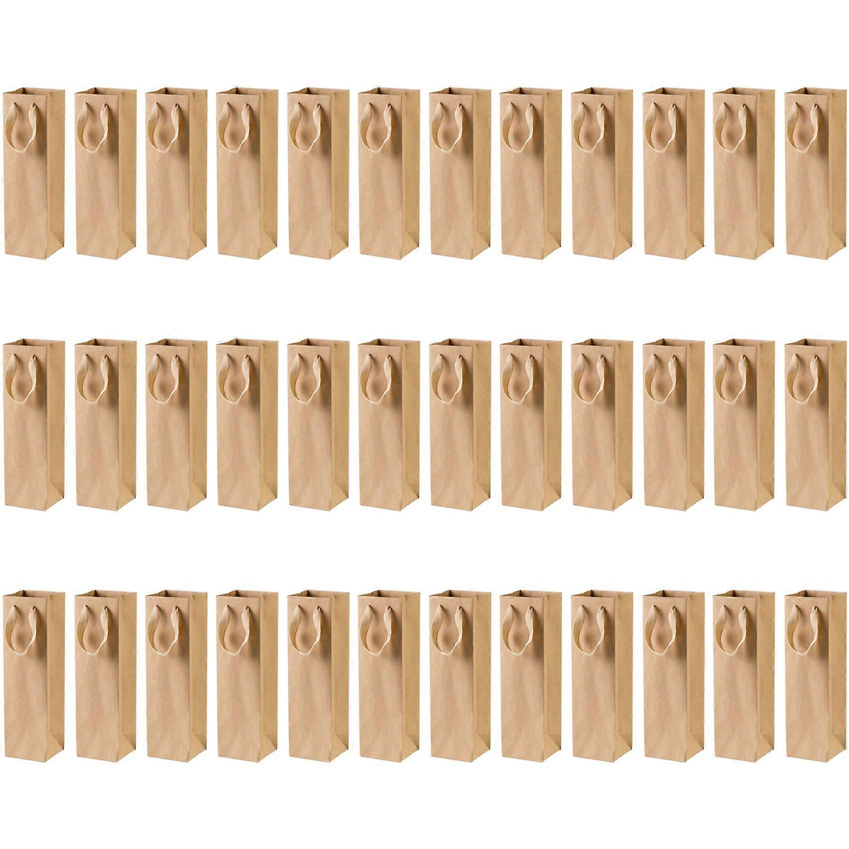 36 Pack Solid Brown Kraft Paper Bags with Sturdy Rope - 4Inch x 4Inch x 13.8Inch - Ideal for Wine,Gifts