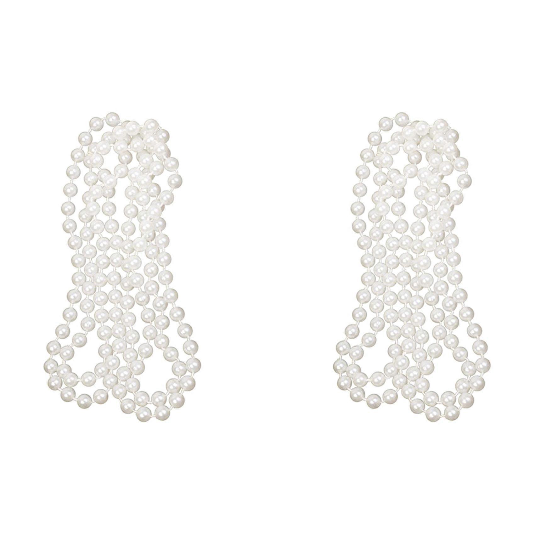 2X Long Artificial Pearl Necklace White Jewelry Accessory for Flapper Girl Costume 1920S