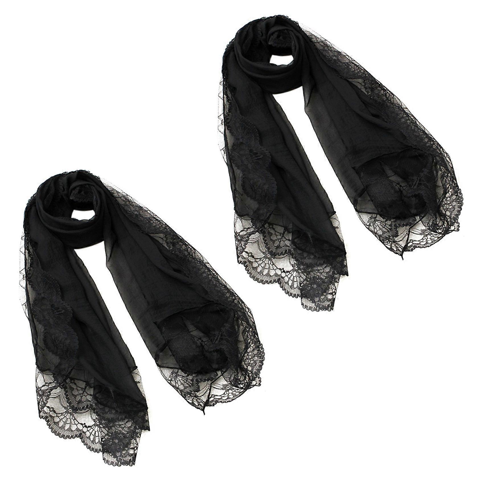2X Woman Scarves Chiffon Lace Scarf Wrap Scarf Black