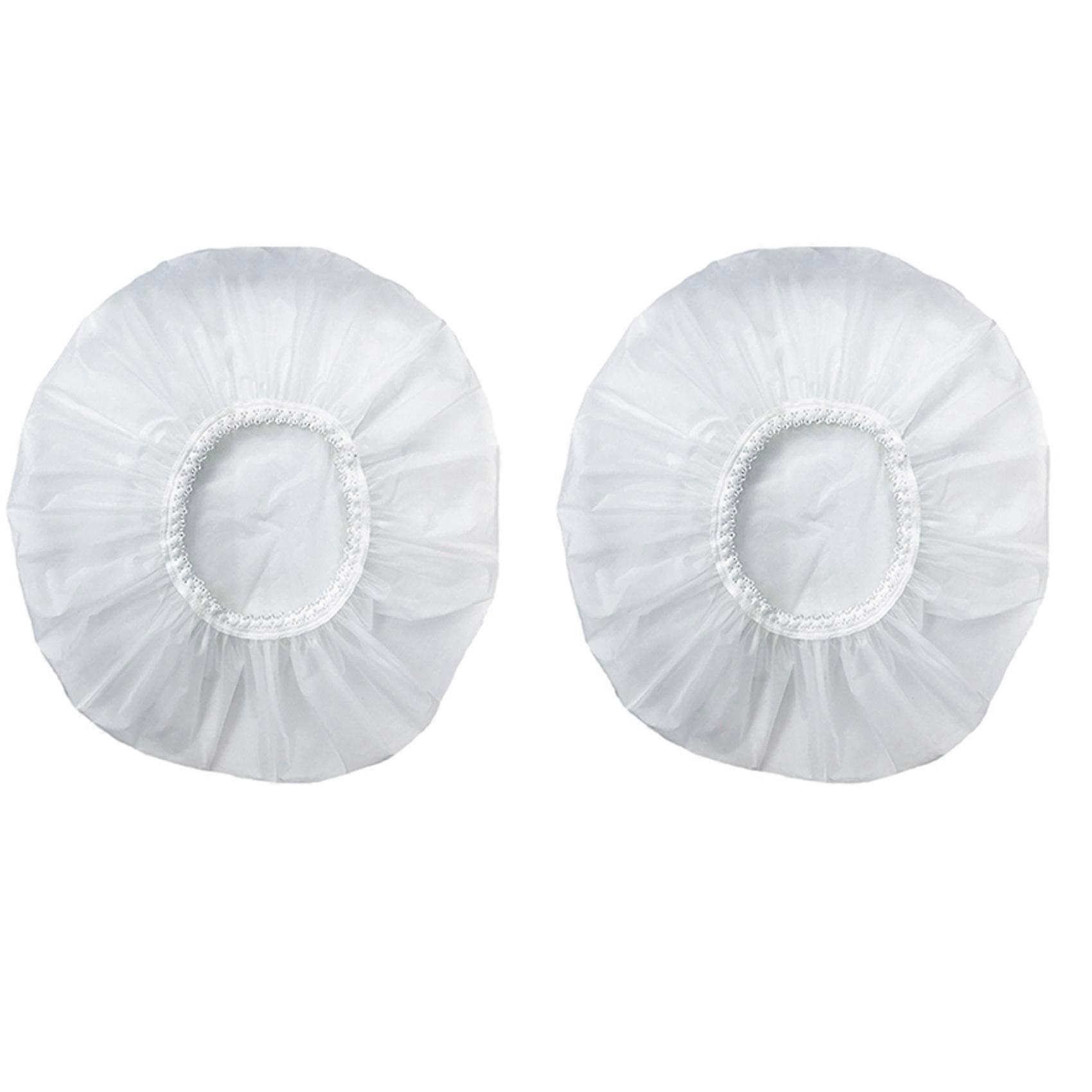 2Pcs Household Waterproof Shower Cap, Swimming Cap, Hotel Elastic Shower Cap Hair Set (White)