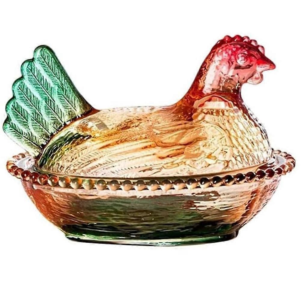 Chicken-Shaped Design: Featuring a distinctive chicken silhouette with a detailed hen-on-nest motif, this glass candy dish instantly becomes a nostalgic centerpiece. Its sculpted feathers, curved tail, and raised pedestal base add farmhouse charm and vintage flair to countertops, shelves, and dining tables alike. Whimsical & Elegant Appeal: Crafted from thick, durable crystal-style glass, this candy jar combines playful barnyard character with refined elegance. The clear construction showcases colorful sweets or treats, while the finely textured surface catches the light beautifully, enhancing both everyday meals and festive gatherings. Versatile Usage: More than just a candy bowl, this charming chicken dish is ideal for serving chocolates, cookies, nuts, desserts, or fruit at parties and family dinners. Use it as a playful dessert server, a centerpiece on holiday tables, or a decorative accent that brings warmth and personality to any room. Multi-Purpose Storage: Equipped with a matching glass lid, this hen-on-nest container also works wonderfully for storing tea bags, coffee beans, sugar cubes, spices, or baking toppings. Beyond the kitchen, it can corral jewelry, keys, craft supplies, or office odds and ends while keeping surfaces tidy and stylish. Ideal Gift Choice: Blending nostalgic farmhouse style with practical everyday function, this chicken-shaped candy dish makes a thoughtful gift for housewarmings, weddings, birthdays, and holidays. Perfect for collectors of vintage décor or anyone who loves unique kitchen accents that are both decorative and useful. Color: As Shown Material: Glass Package Contents: 1*Crystal Glass Storage Jar Set Only the above package content, other products are not included. Note: Light reflection and different displays may cause the color of the item in the picture a little different from the real thing. The measurement allowed error is +/- 1-3cm.