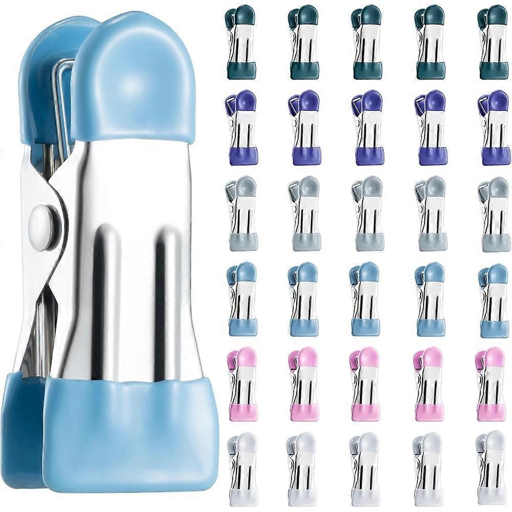 High-quality silicone coating protects clothing and allows for easy opening without leaving visible marks or wrinkles. Wide clip holds clothing securely, even in strong winds. Extremely strong and suitable for outdoor use. Versatile clips can be used for various purposes, including holding chip bags, photo clips, and reminders. Comes in 6 colors, 30 pack, making them easy to store and identify for different uses. Clothespins high-quality silicone coating protects clothing and allows for easy opening without leaving visible marks or wrinkles. The wide clip holds clothing securely, even in strong winds. The clip is also extremely strong and suitable for outdoor use. Chip clips can also be used to hold chip bags and food bags to keep food fresh. They can also be used as photo clips, office labels, to keep reminders front and center, and clothespins to secure sunshades while camping. These clips come in 6 colors, 30 pack, making them easy to store in different rooms for different uses. These colors also make them easy to identify when dropped or used outdoors. Clips are strong enough to be used for hanging up heavy blankets. Clothpins can also be used for other things, such as craft projects. Their versatility and variety of colors increase their practicality, making them suitable for both indoor and outdoor use. Color: As Shown Material: Stainless Steel Package Contents: 30 Pack Chip Clips Only the above package content, other products are not included. Note: Light reflection and different displays may cause the color of the item in the picture a little different from the real thing. The measurement allowed error is +/- 1-3cm.
