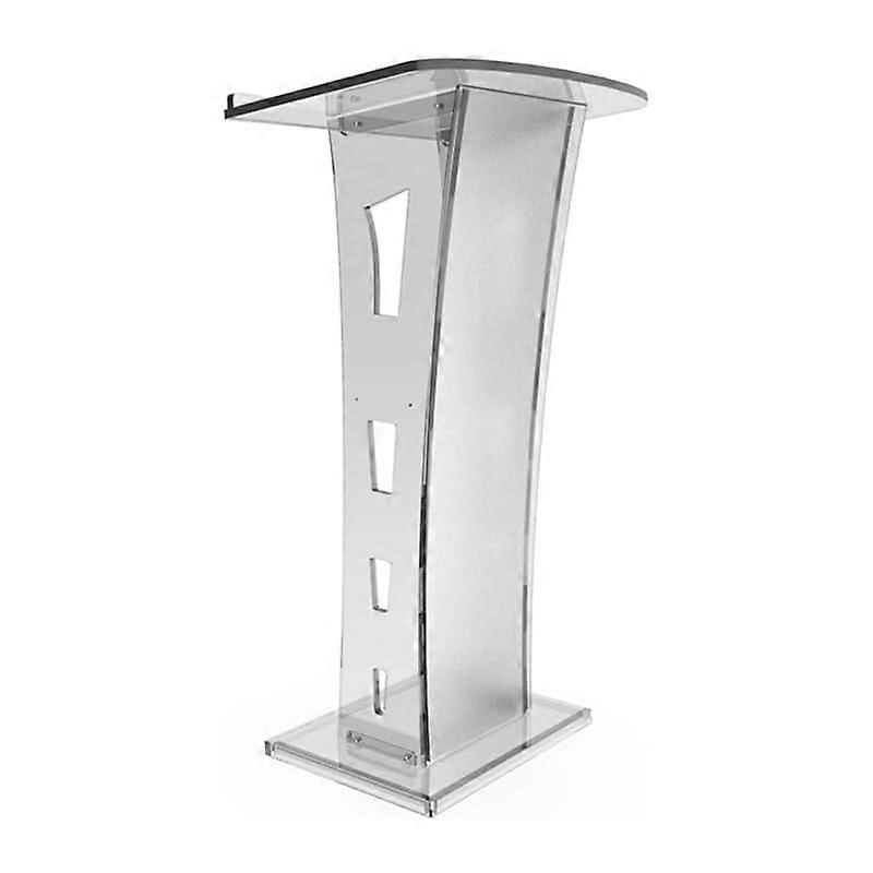 Clear Acrylic Podium for Church with Large Tilted Reading Surface and Builtin Storage Shelf