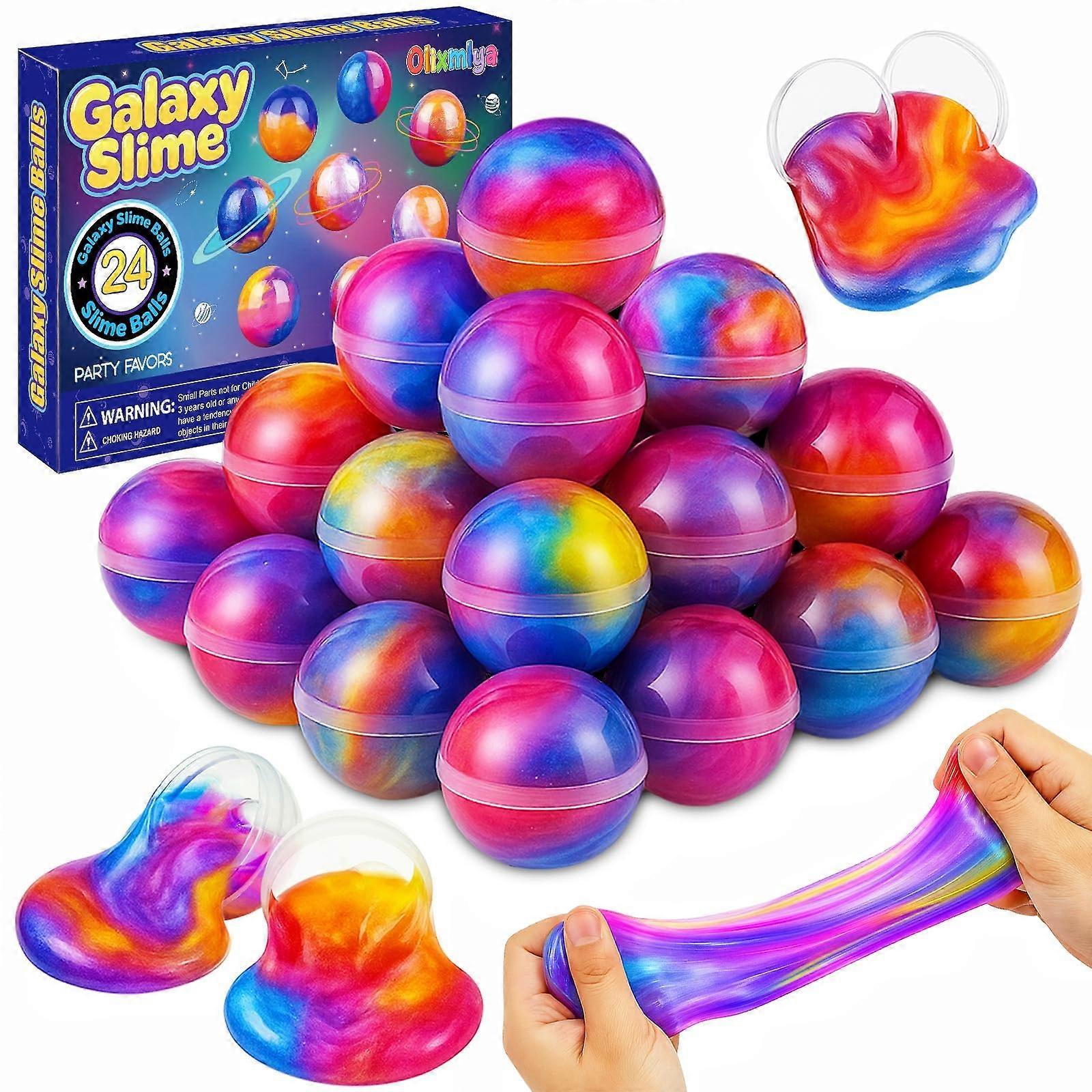 24 Pack Galaxy Slime Balls with Glitter, NonSticky Stretchy Party Favors for Kids Birthday
