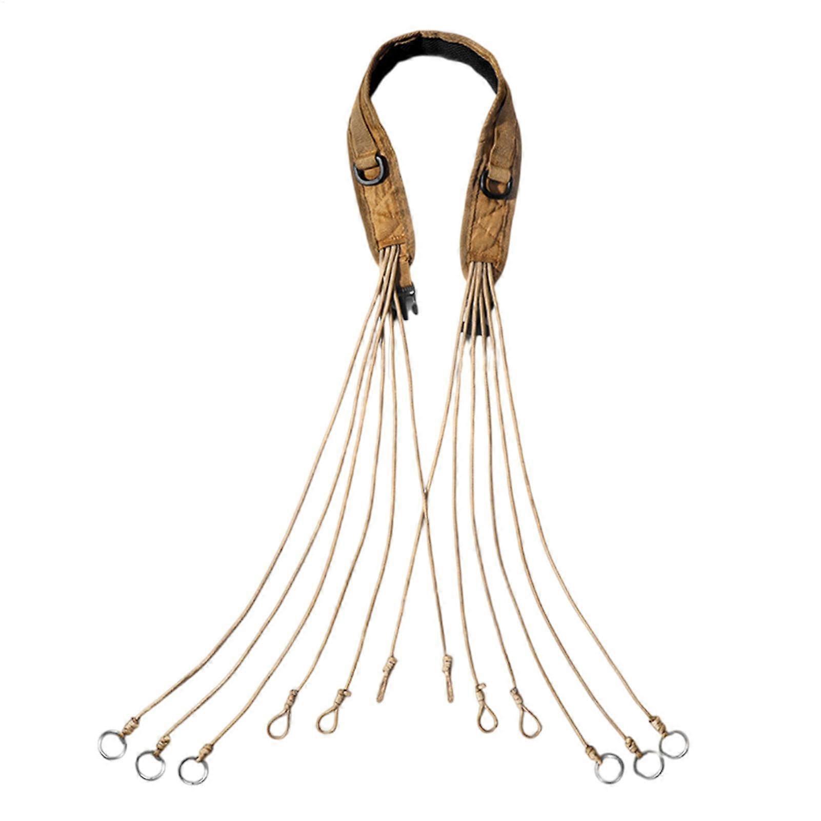12Ring Design for Easy Call Organization This duck call lanyard features a 12ring design that securely holds turkey, mallard, geese, and other calls, allowing quick access and organized separation between calls in the field. Durable and Comfortable Waterfowl Carrier Strap Crafted from quality, weatherresistant material, the strap withstands harsh outdoor conditions. The adjustable design provides allday comfort, whether you are in the field for waterfowl, geese, or turkey hunting. Versatile Hunting Accessory for Various Birds Not limited to ducks, this lanyard accommodates calls for multiple species, including mallard ducks, geese, turkeys, and even small game like squirrels. It helps keep hunting calls organized and easily accessible across a range of game. for Active Hunters and Outdoor Enthusiasts A robust addition to any hunting kit, it keeps calls close at hand for quick use. Ideal for waterfowl hunting, turkey hunting, and small game trips, it supports efficient and prepared fieldwork. Use Scenarios Waterfowl hunts in marshes or blinds: switch between duck and goose calls quickly without fumbling. Turkey hunts in fields or woods: keep turkey calls ready while moving between spots. Small game outings: carry calls for squirrels or other small game, maintaining organized gear.