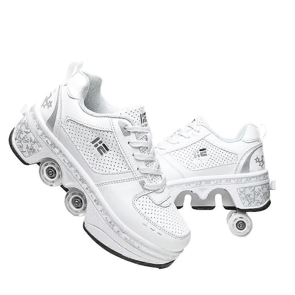 Adjustable 2in1 Roller Skates Shoes, Convertible Walking Skates Boots, Comfort Fit, Size 39