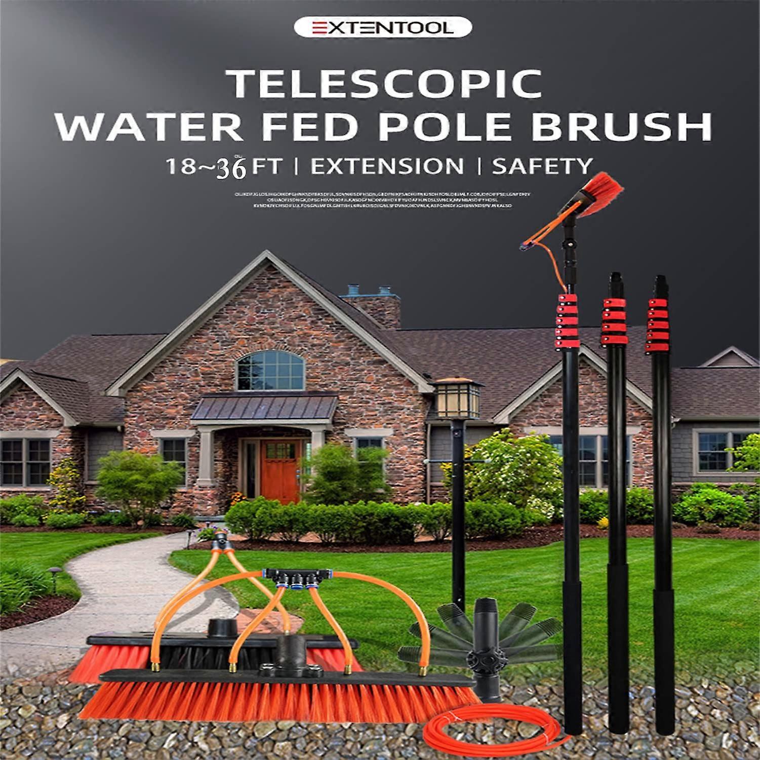 Water Fed Pole Telescopic Window Cleaning Kit with 180° Rotating Brush for Solar Panels 18FT36FT