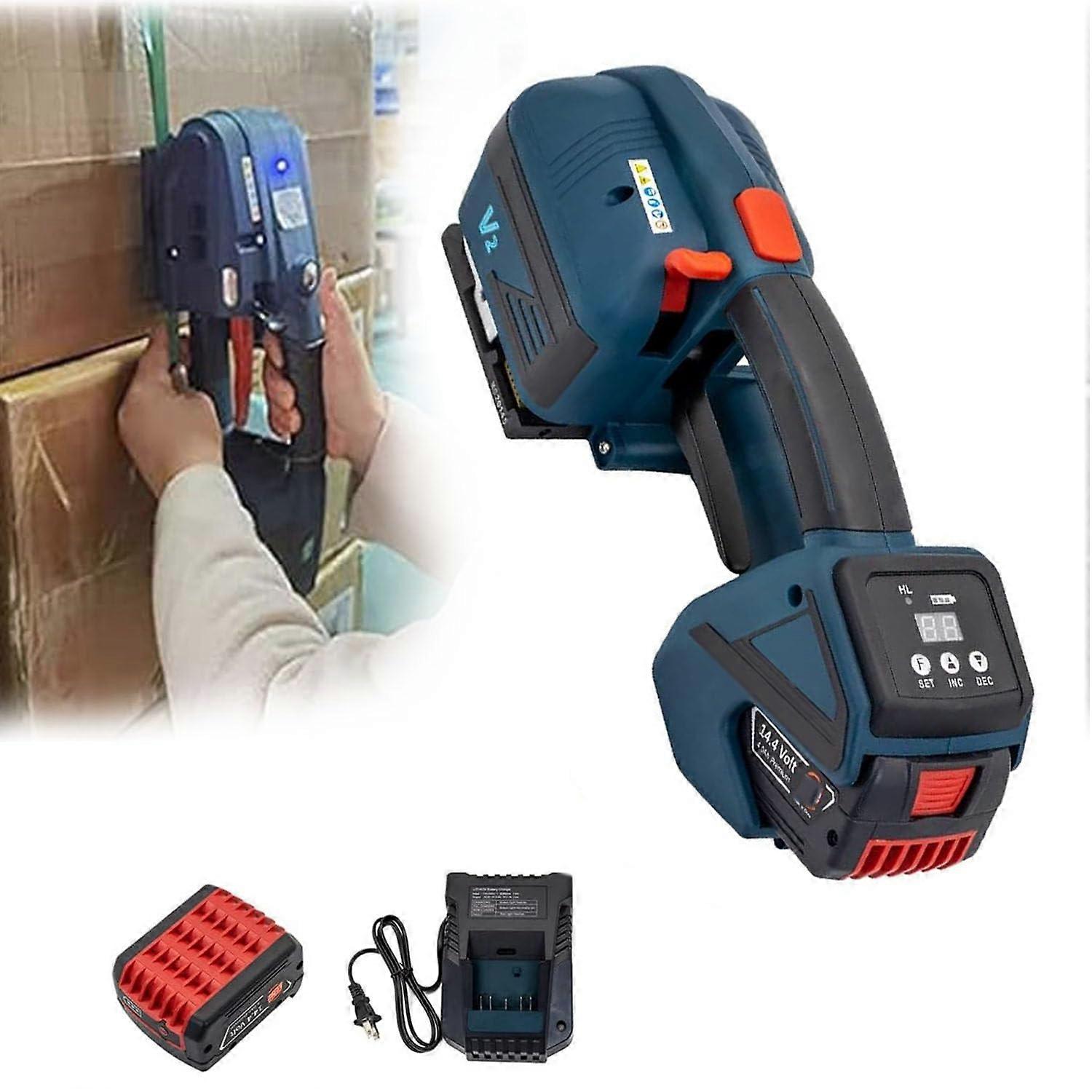 Cordless Electric Strapping Tool, One‑Touch Auto Strapping, LCD Display, 4000mAh Battery for PP PET 1/2‑5/8 Inch Straps