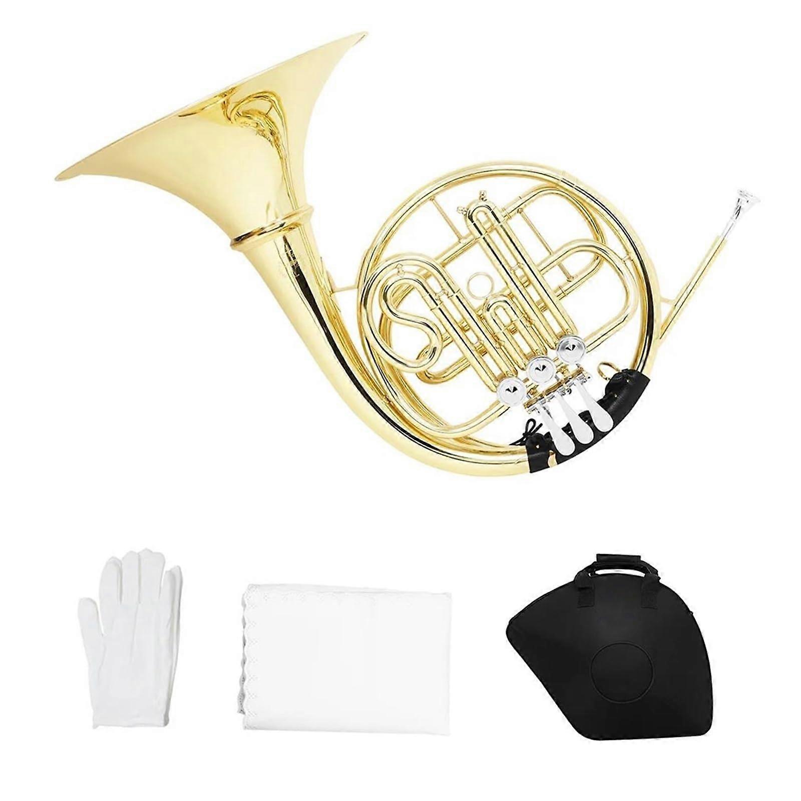 Gold Plated Bb French Horn with Double Row Keys, Rich Clear Tone, Beginner Friendly Brass Instrument