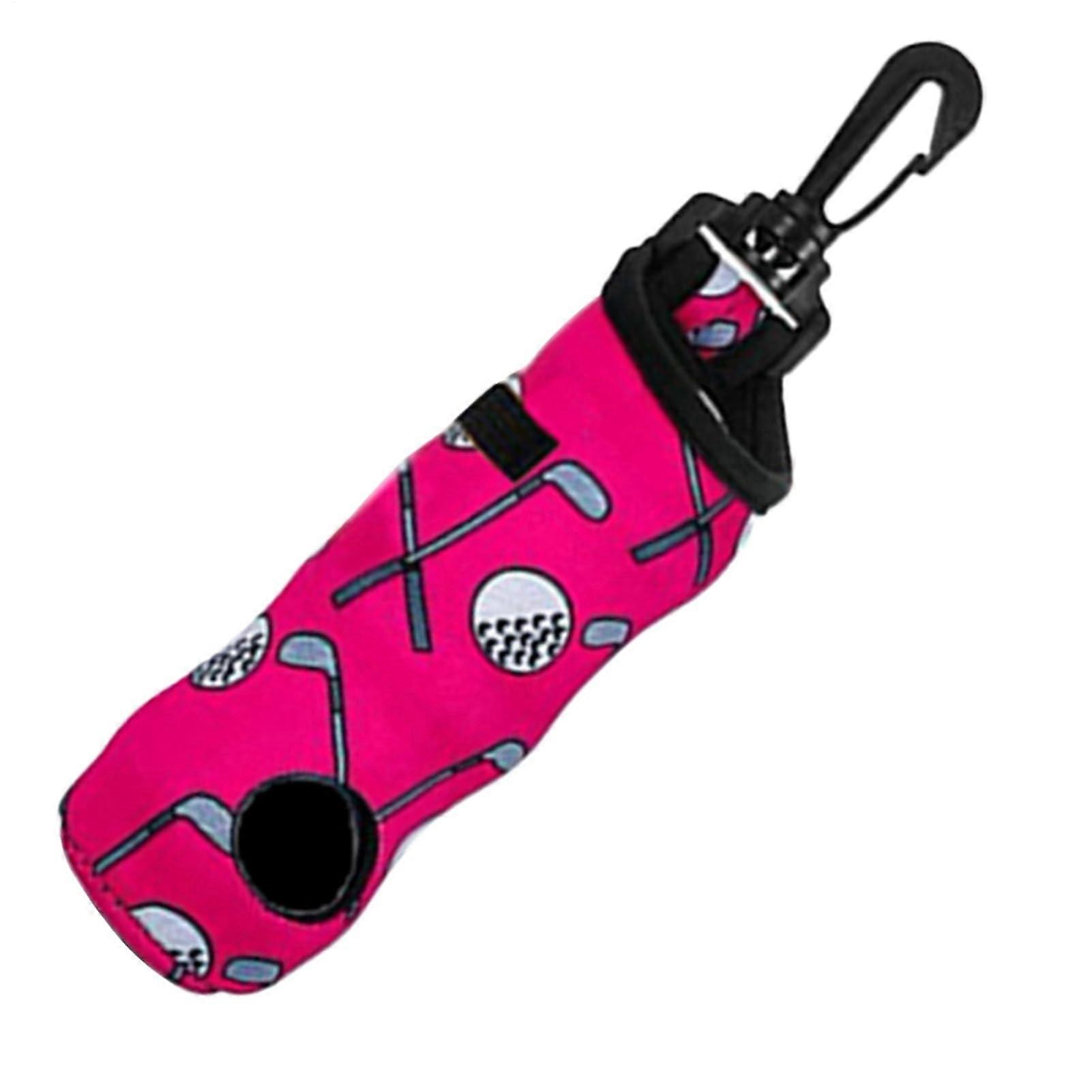 Golf Ball Holder and Tee Bag, Waterproof Oxford Fabric, Dual Openings, Keychain Clip, Pink for Golf Practice and Travel