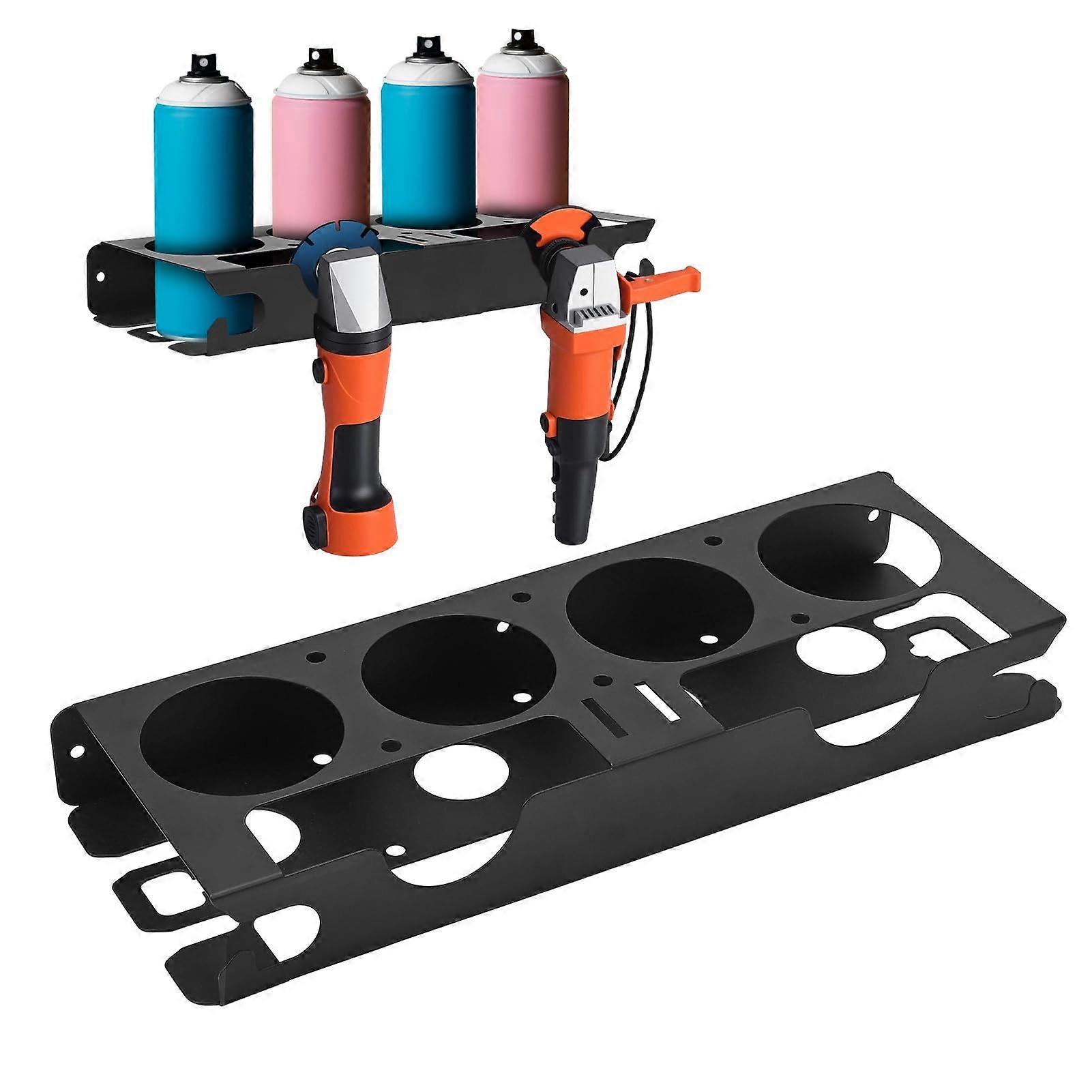 Garage Storage Rack with Dual Grinder Holder and Four Bottle Slots, Wall Mounted Metal Tool Organizer