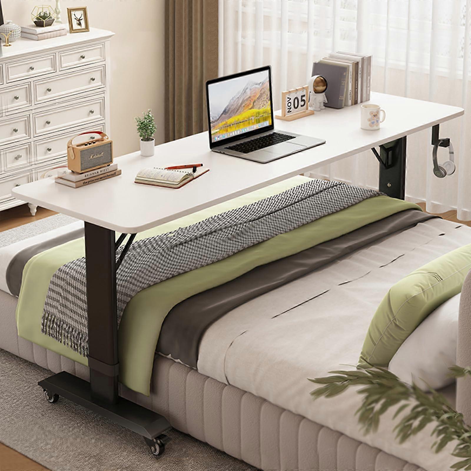 Overbed Table with Wheels Height Adjustable 59in Wide Desk for King Size Bed Sturdy Steel Frame