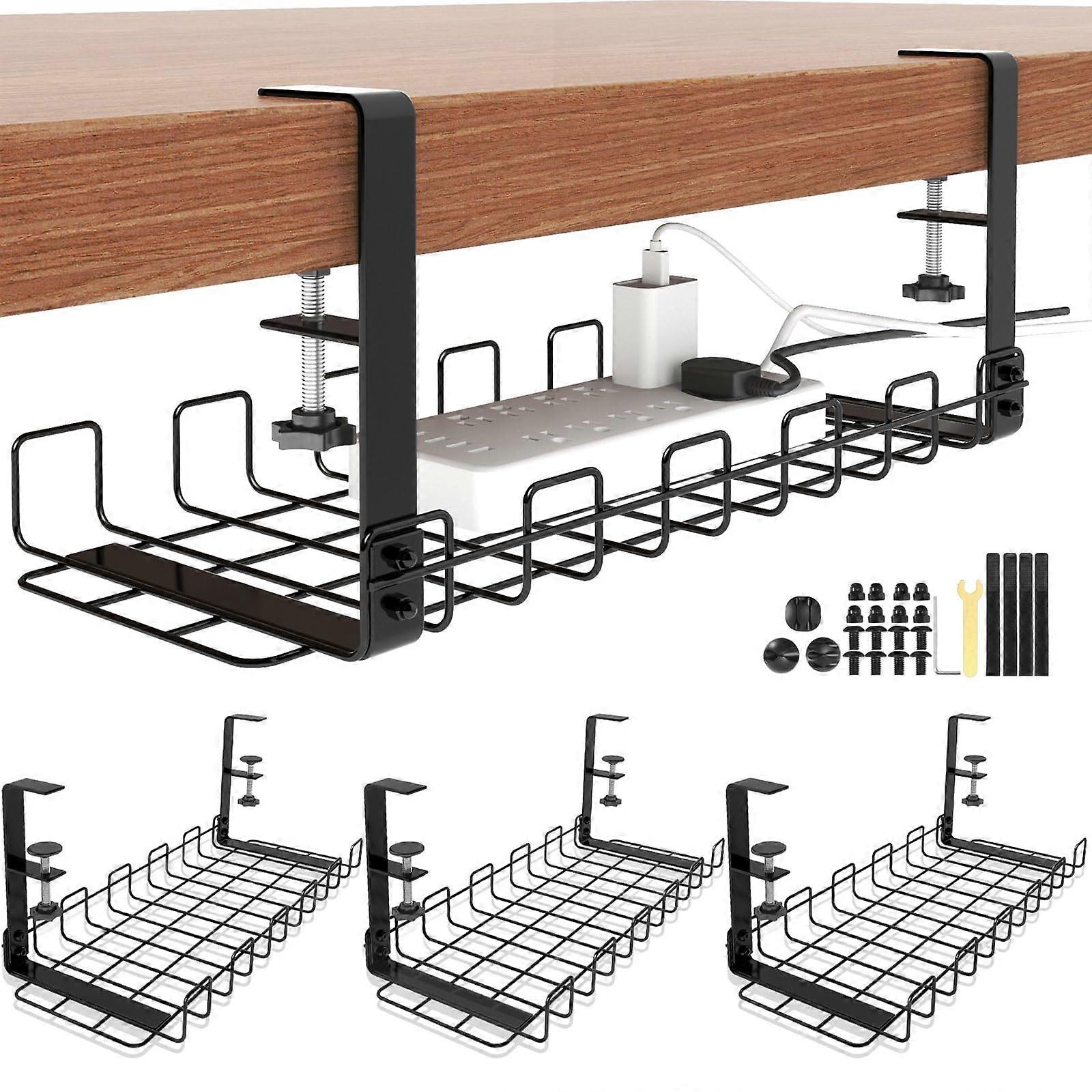 Under Desk Cable Management Tray 4 Pack 15.75in No Drill Metal Desk Cable Organizer with Clamps Black