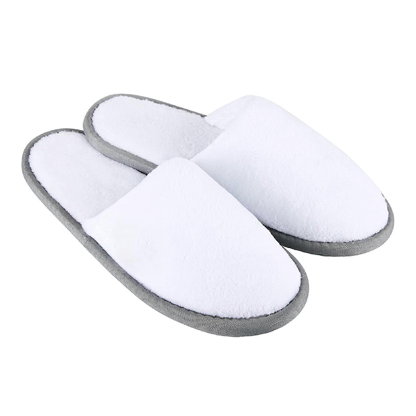 Spa Slippers Large Size Closed Toe White Coral Fleece Comfort Washable EVA Sole Pack of 12 Pairs