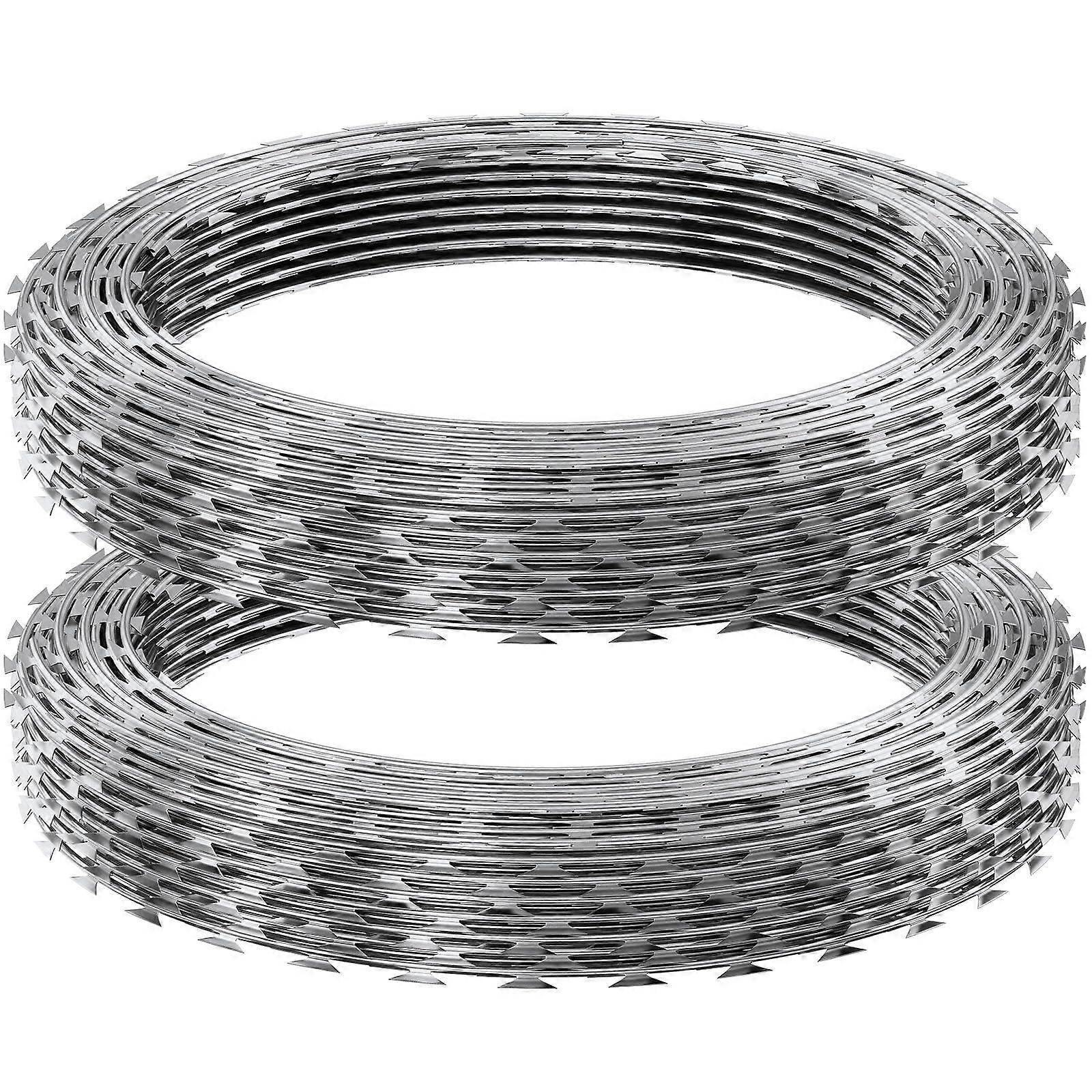 Galvanized Razor Wire 98ft with Sharp Spiral Blade for Security Fencing and Perimeter Protection