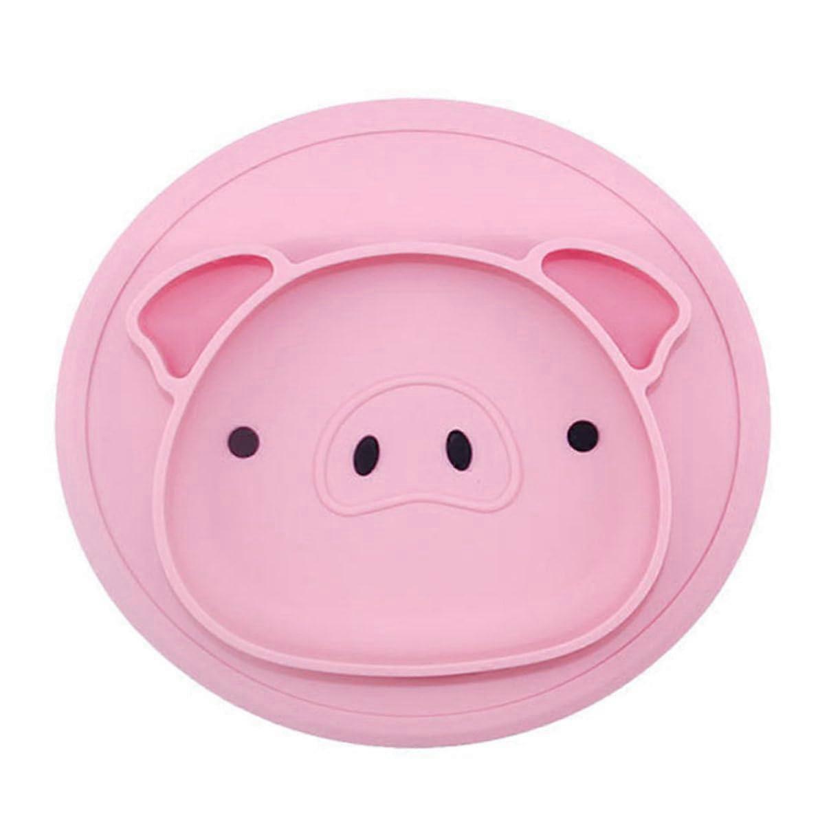 Silicone Baby Plate with NonSlip Base, Cute Pig Divided Toddler Feeding Tray, Easy Clean