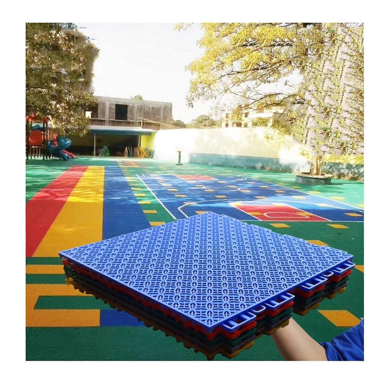 Blue modular interlocking drainage floor tiles, 10 piece set Product overview These modular tiles are made from durable polypropylene (PP) and snap together to form a custom floor surface for indoor or outdoor use. Each square tile measures 25 x 25 cm (9.84 x 9.84 inches) and features a lockin system and dense drainage holes to allow fast water flow and improved airflow beneath the tiles. Key benefits Custom fit: Tiles can be cut with a utility knife to match any shape or size for a tailored installation. Fast drainage: Densely spaced holes channel water away quickly, keeping the surface drier and promoting airflow under the tiles. Comfortable underfoot: Cushioned PP construction offers antifatigue properties for extended standing and a textured surface for improved traction. Tool installation: Snap tiles together by hand for quick assembly and disassembly without tools or glue. Easy maintenance: Hose down for routine cleaning; use a scrub brush and soap for deeper cleaning. Tiles lift easily for thorough cleaning or storage. Durable material: Made from PP for longlasting performance in a variety of environments. Color options and pack sizes: Available in blue, green, red, and yellow. Pack options include 10 or 16 pieces. Specifications Material: PP Tile size: 25 x 25 cm / 9.84 x 9.84 inches (each) Shape: Square Lockin system: Yes Drainage: Densely perforated design Package: 10 pieces included (also available in 16 piece packs) Colors available: Blue, green, red, yellow Typical applications Pool decks and locker rooms: Use around pool edges or in changing areas where water drainage and quick drying are needed. Garages and outdoor walkways: Create a durable, easytoclean surface that can be trimmed to fit irregular areas. Playgrounds and sports courts: Configure custom layouts for courts, play zones, or activity areas with expandable, multicolor options. Installation notes Lay tiles on a flat surface and snap together to form your desired layout. Trim edges with a utility knife for a precise fit around obstacles and corners. No adhesive or tools required; tiles can be reconfigured or removed for transport and storage. What is included 10 splicing soft mats (25 x 25 cm each) Lockin interlocking system for quick assembly This set offers a practical, modular flooring solution for wet or traffic areas where drainage, comfort, and easy maintenance are priorities.