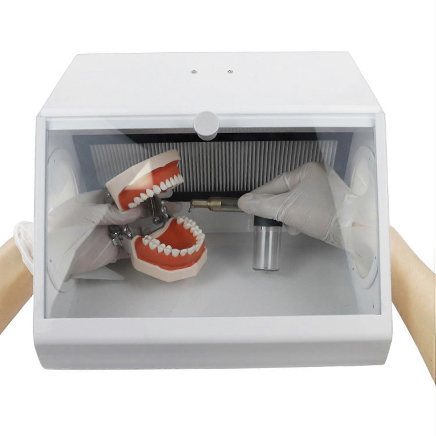 Dental Lab Dust Collector with LED Light, Dual Filters and Tempered Glass Sandblasting Cabinet