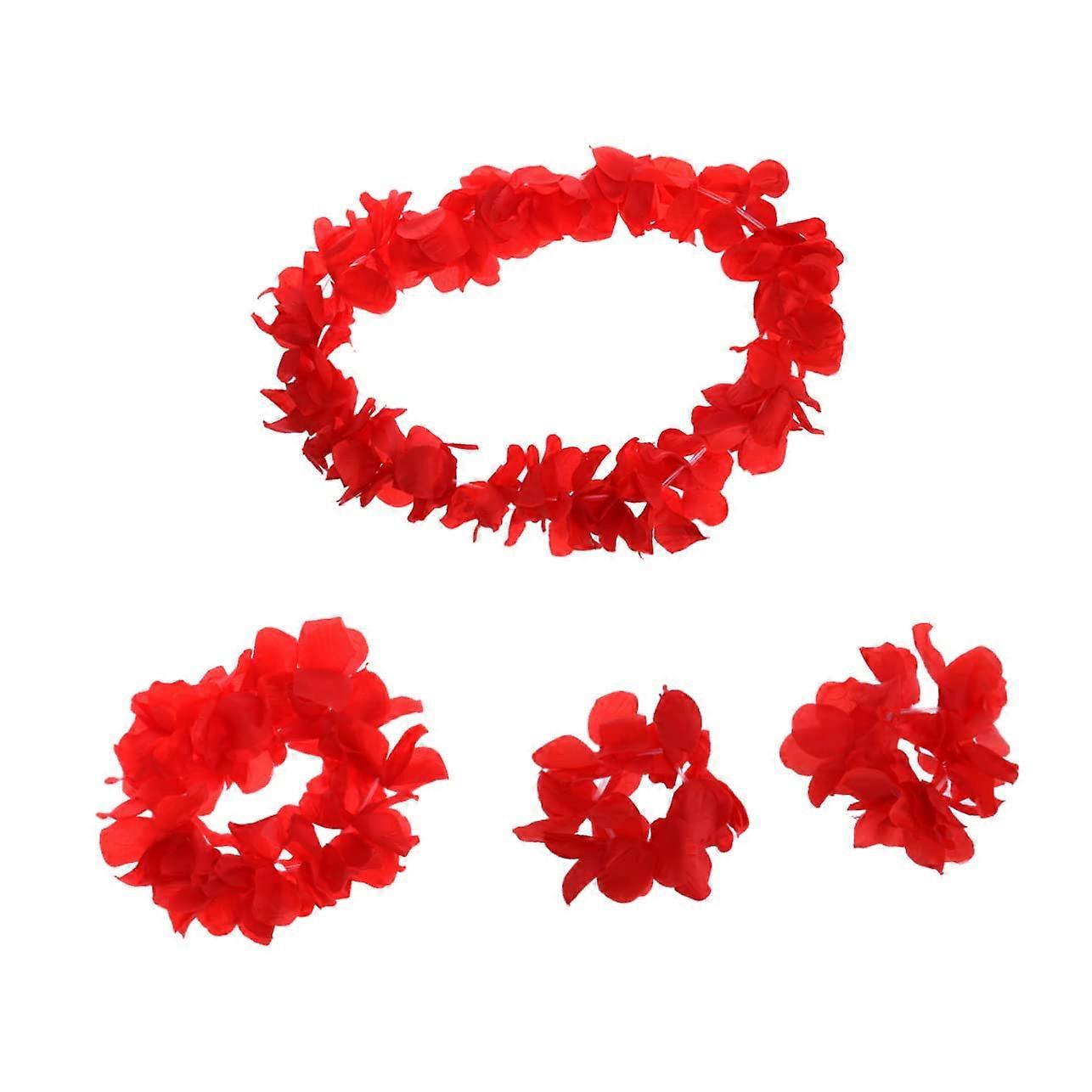 Hawaiian Flower Crown and Floral Wreath Headband Set with Necklace and Bracelets for Luau Party