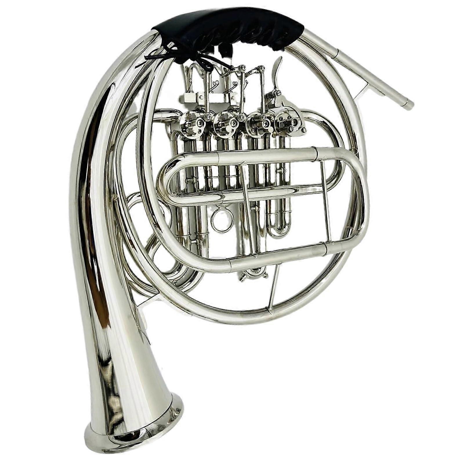 Professional Nickel Plated French Horn, 4 Key B/F Tuning Brass Instrument with Comfortable Grip