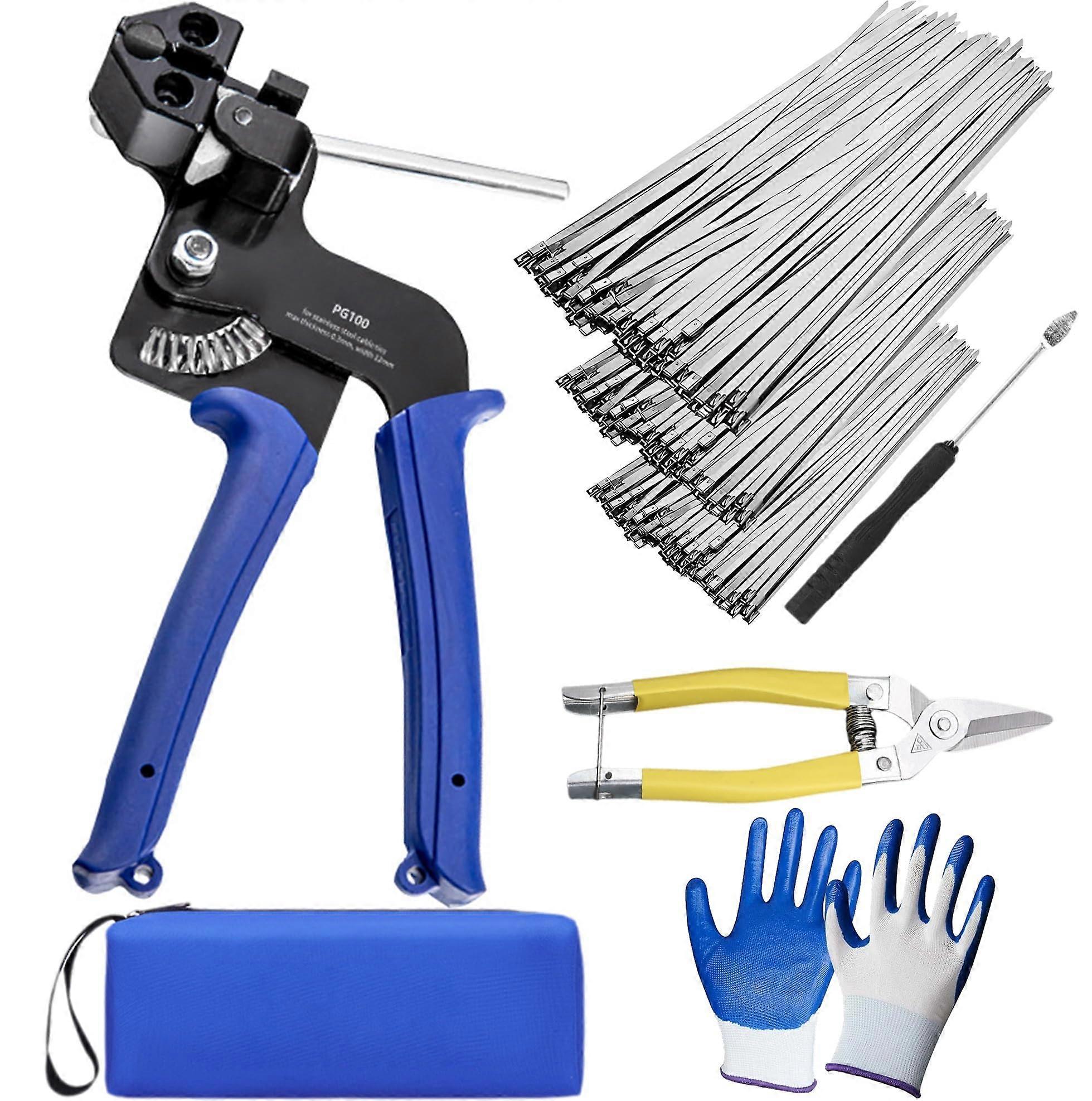 Stainless Steel Cable Tie Gun Kit with 150 304 Zip Ties, Heavy Duty Tensioning and Cutting