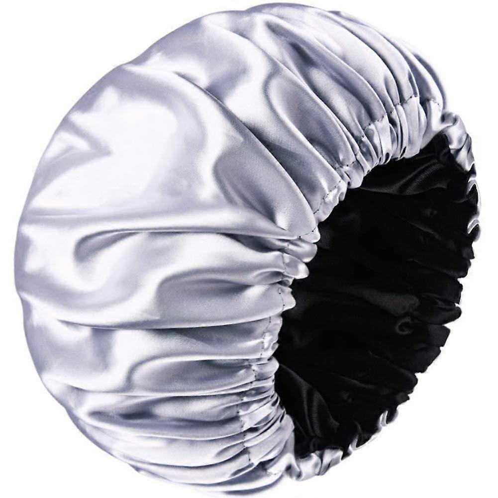 Satin Sleep Bonnet for Women Long Thick Hair Reversible Double Layer with Elastic Band Gray Black