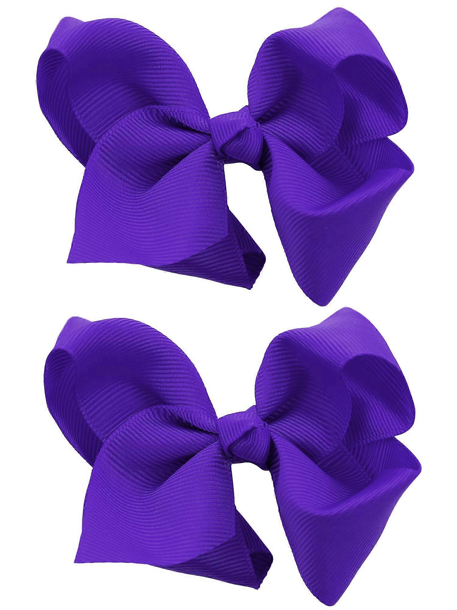 Dark Purple Grosgrain Ribbon Hair Bow Clips Set of 2 for Toddler Girls with Secure Alligator Clip