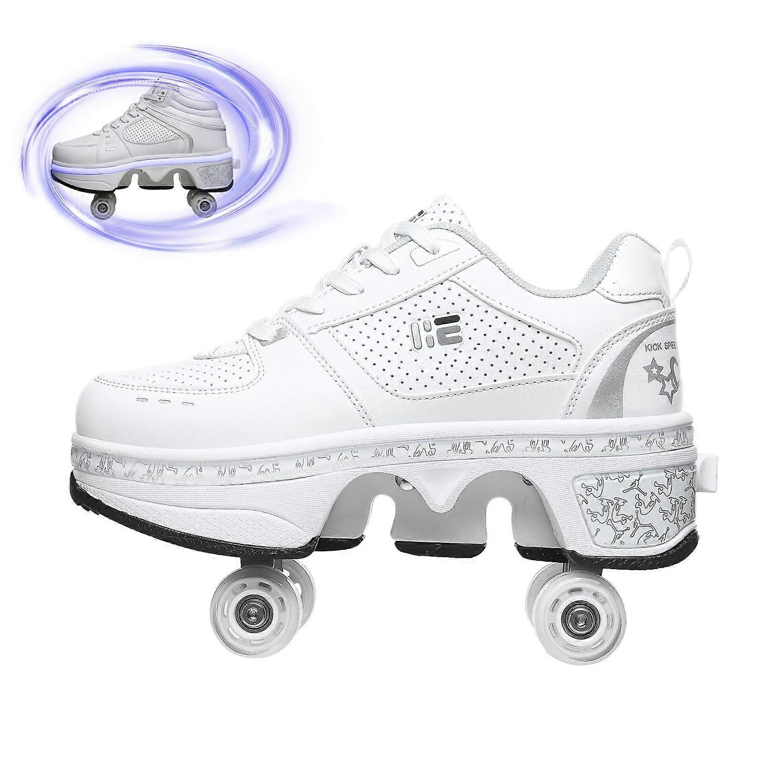 Roller Shoes with Hidden Wheels Design, 2 in 1 Retractable Wheel Sneakers for Kids and Adults, White EUR38