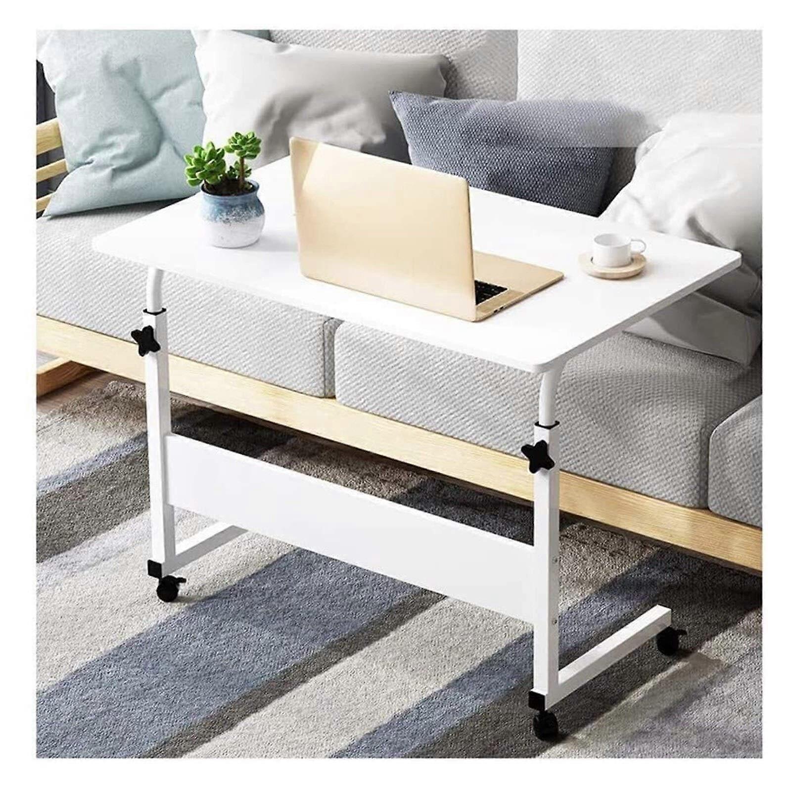 Overbed Table Height Adjustable CShaped Laptop Desk 80x40cm White with Wheels for Bedroom