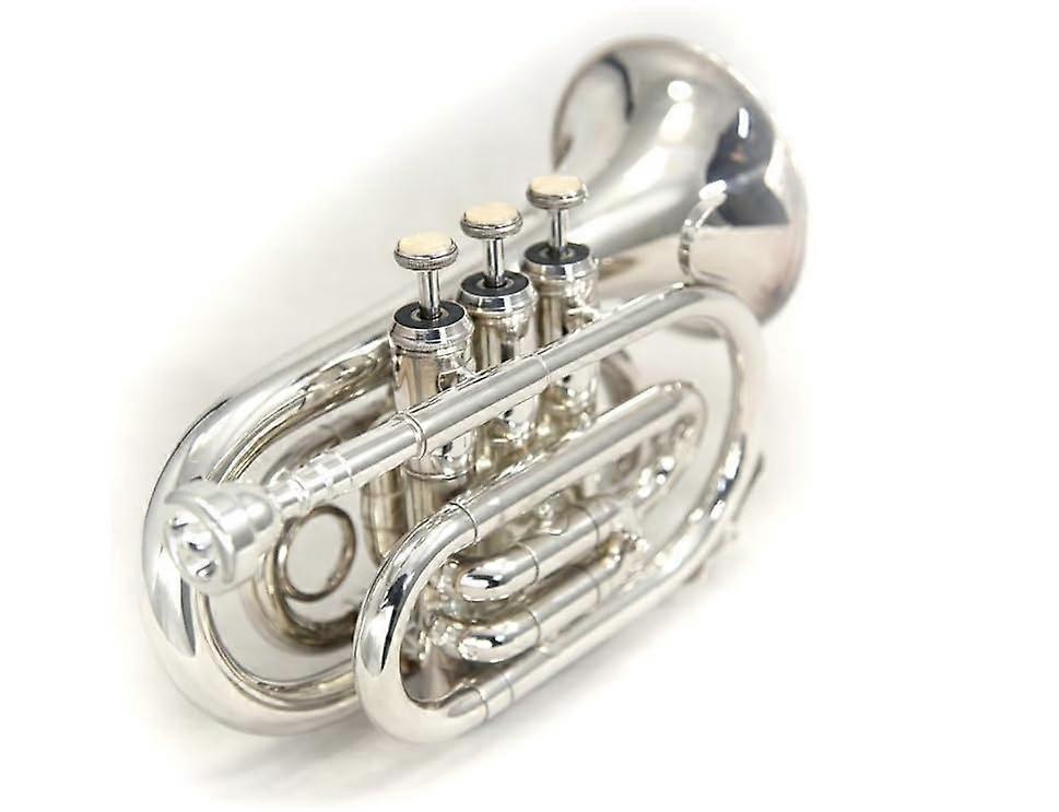Bb Pocket Trumpet Nickel Plated Compact Bb Design with Case Gloves Cloth Valve Oil